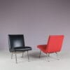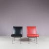 A highly recognizable chair after Jens Risom’s original design, redefined by the Walter Knoll Team. Designed to create a casual, modern style this version has a chrome plated metal base and one chair is upholstered in red skai (faux leather), the other chair in black skai. The chairs have a most comfortable seat, combining style with comfort. They combine really nicely and will definitely draw the attention in any interior!