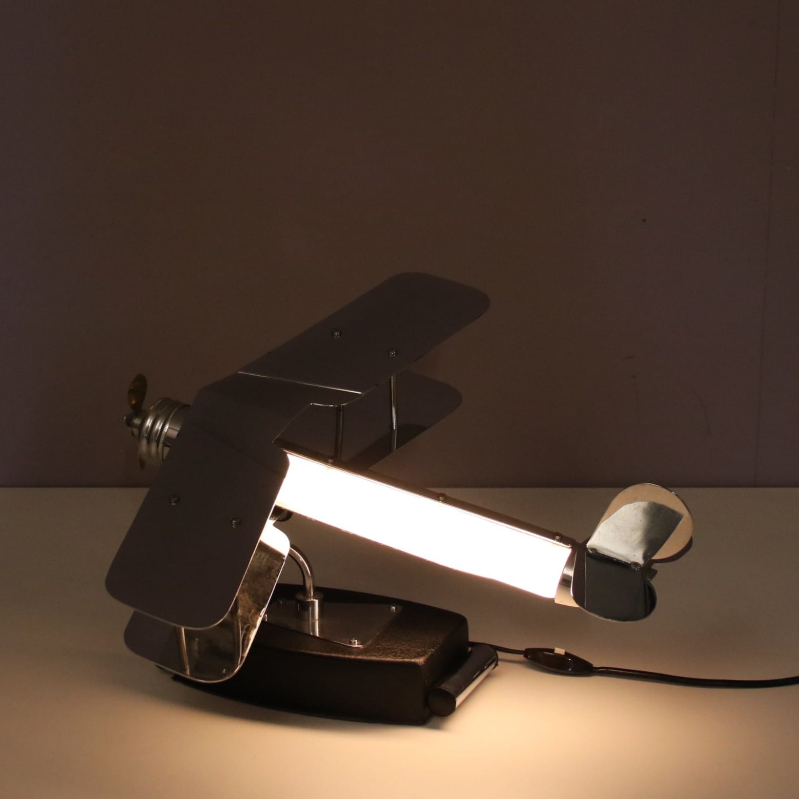 A beautiful biplane shaped table lamp manufactured in the USA in the 1950s.