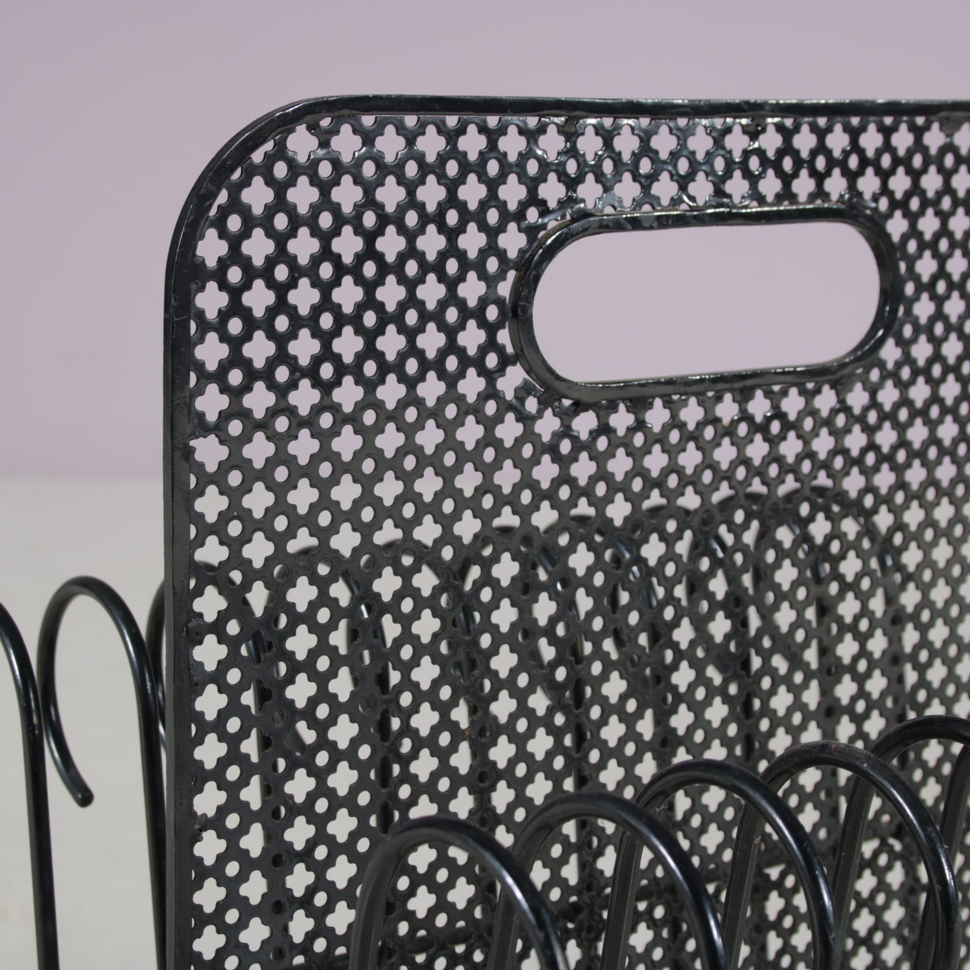 This lovely piece is made of high quality black perforated metal with wonderful elegant shapes to the frame. A highly recognizable piece by iconic designer Matégot! The integrated handle adds to the ease of use of this appealing piece that has plenty of storage capacity for magazines and similar items. A wonderful addition to any modern decor!