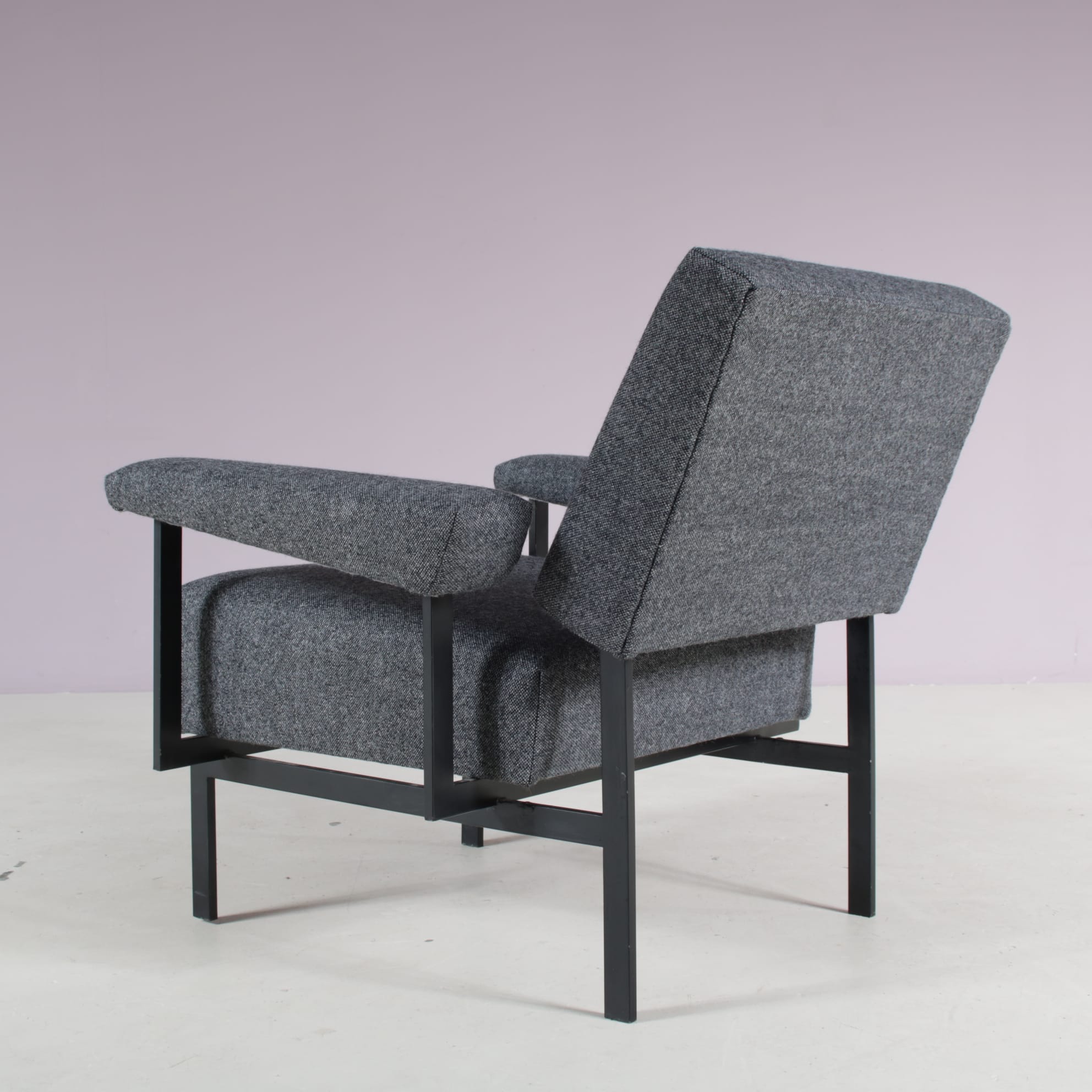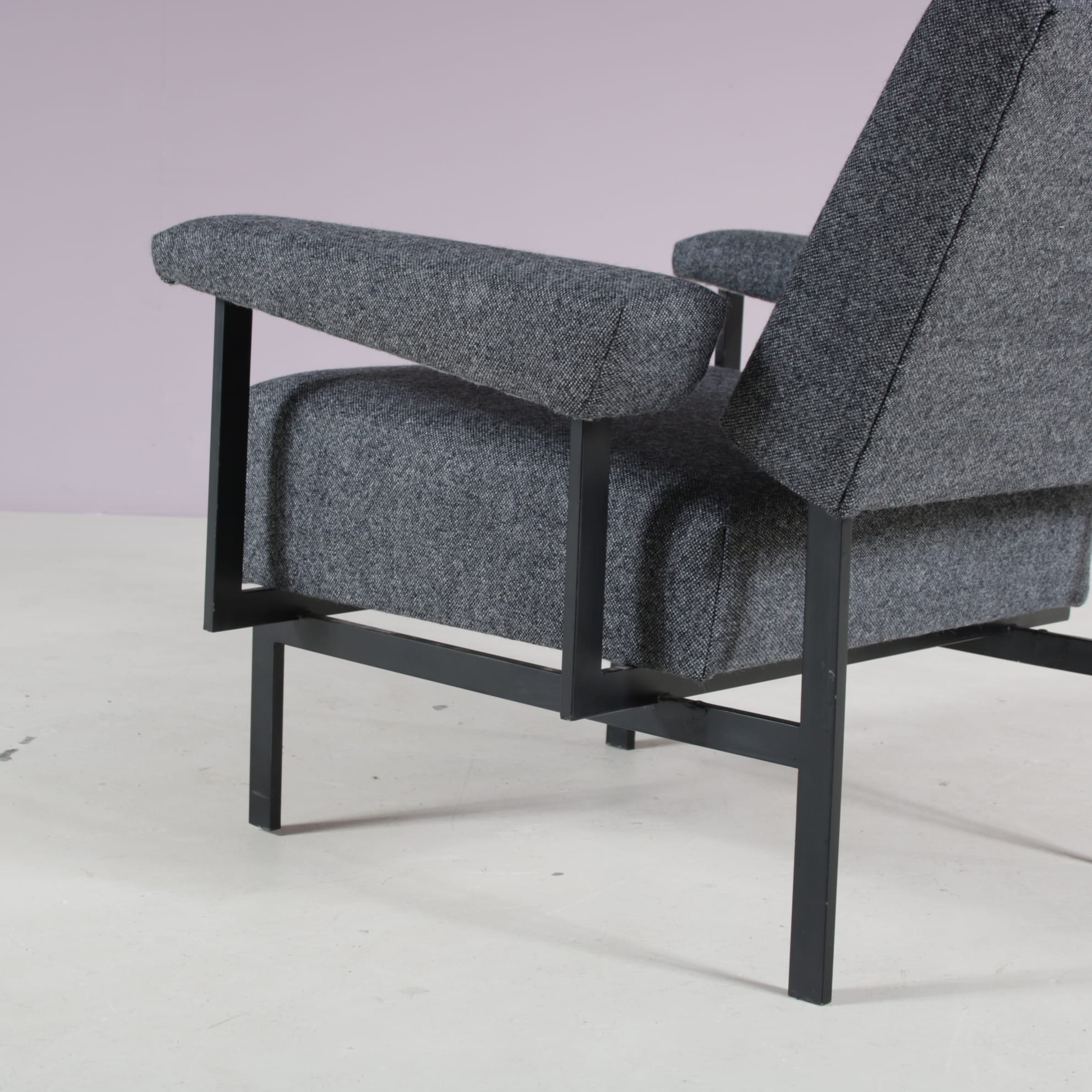 2509 4 (101) m27943 1950s Easy chair from the Japanese series, black metal base with new upholstery Cees Braakman Pastoe, Netherlands