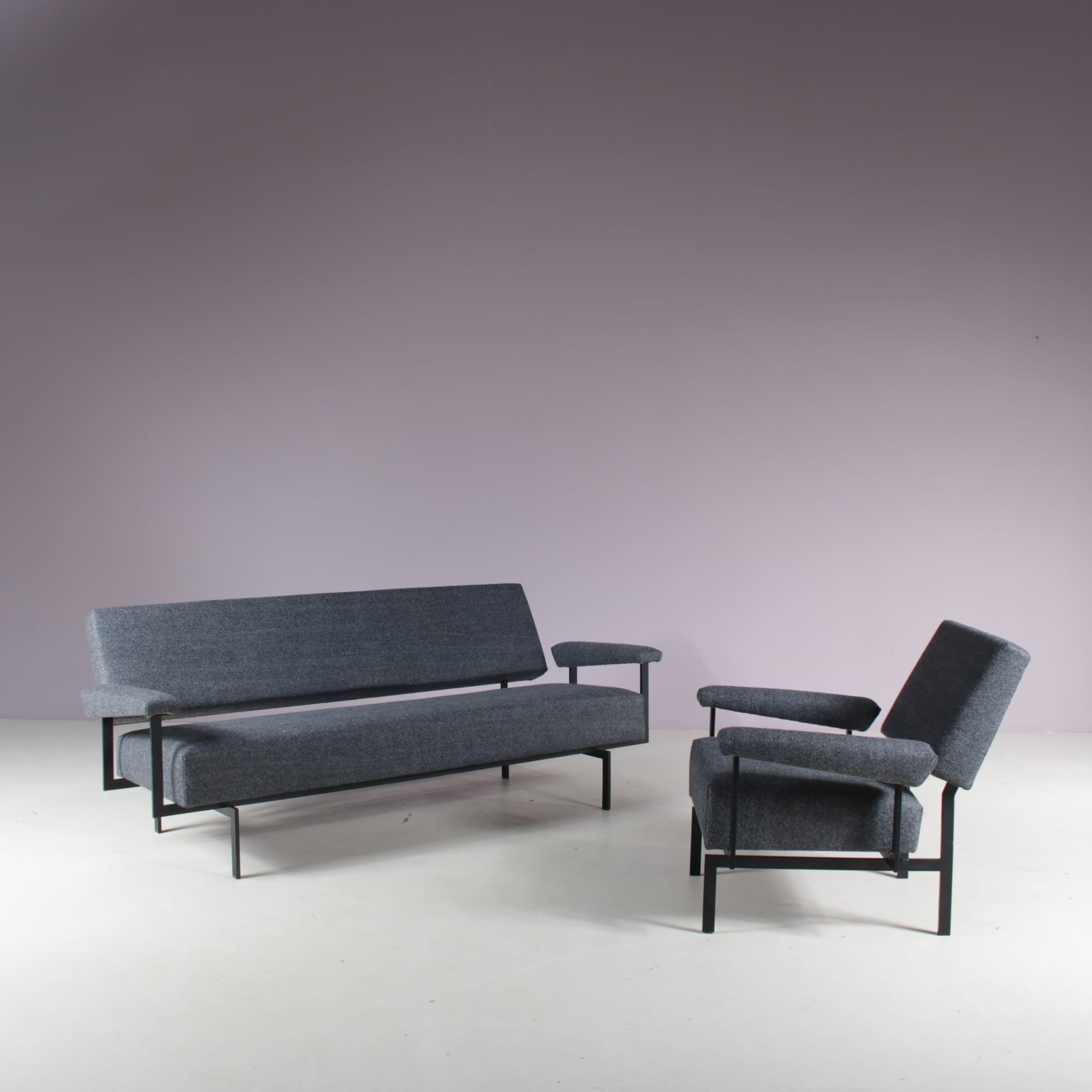 2509 4 (93) m27942 1950s 3-Seater sofa from the Japanese series, black metal base with new upholstery Cees Braakman Pastoe, Netherlands
