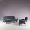 2509 4 (93) m27942 1950s 3-Seater sofa from the Japanese series, black metal base with new upholstery Cees Braakman Pastoe, Netherlands