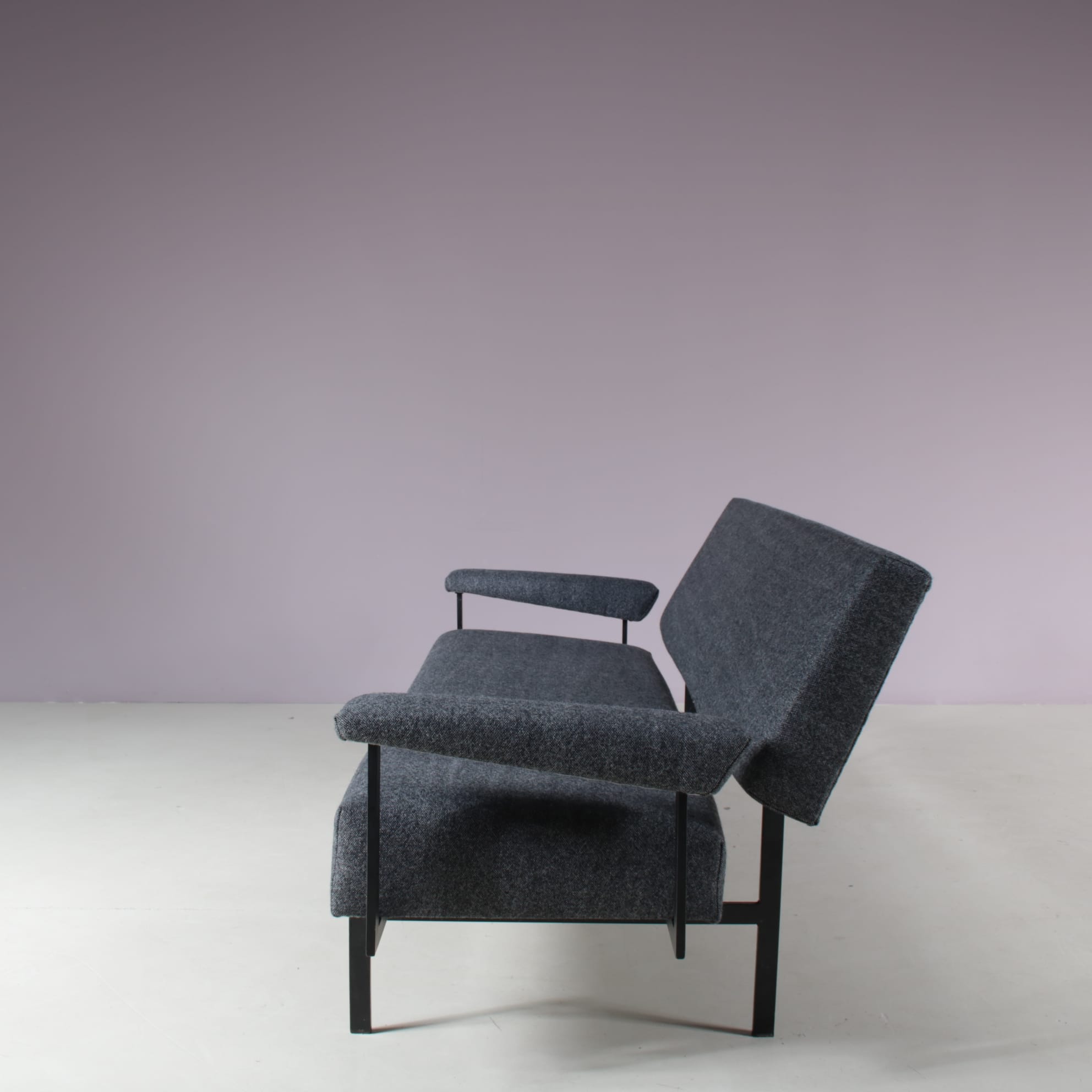 2509 4 (85) m27942 1950s 3-Seater sofa from the Japanese series, black metal base with new upholstery Cees Braakman Pastoe, Netherlands