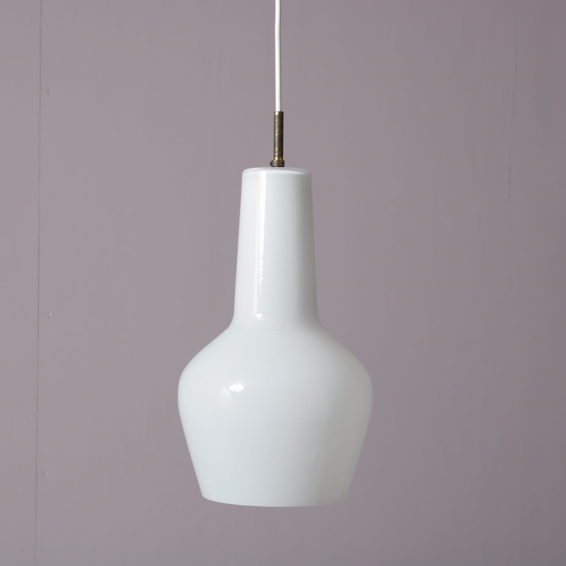 This elegant lamp is made of high quality white glass in an elegant shape. The shape and materials allow for the light to be gently diffused, more bright underneath. The high quality materials and beautiful finish makes this piece an elegant, stylish addition to the decor that will add a sense of luxury and warmth to any interior.