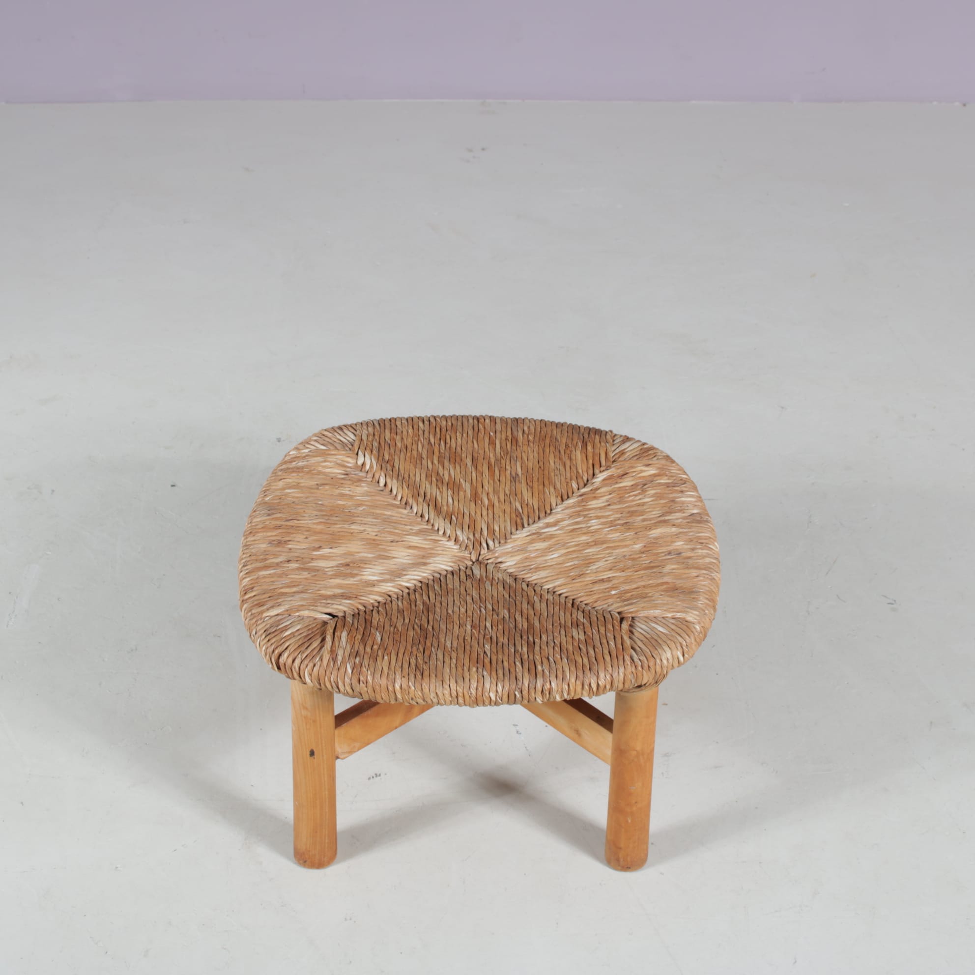 2511 2 (74) m28138 1950s Pine wooden stool with rush upholstery Wim den Boon Netherlands