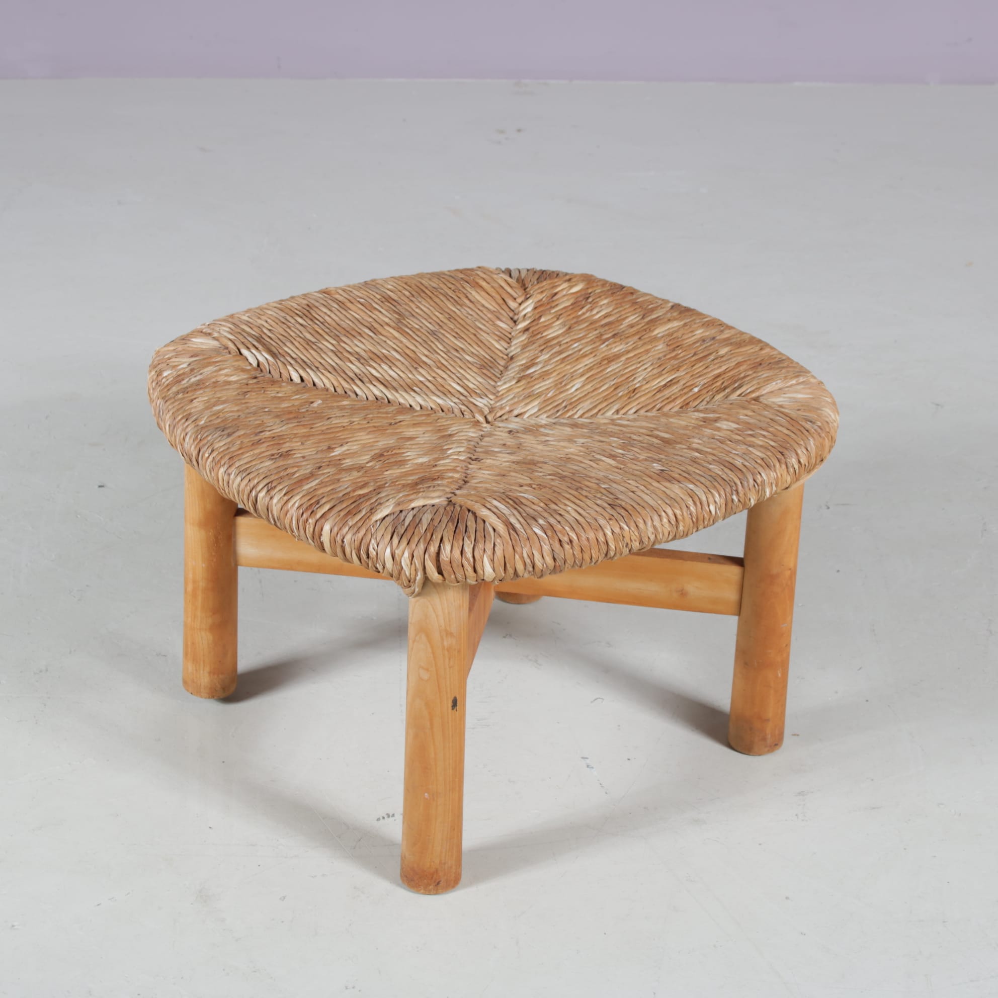 2511 2 (75) m28138 1950s Pine wooden stool with rush upholstery Wim den Boon Netherlands