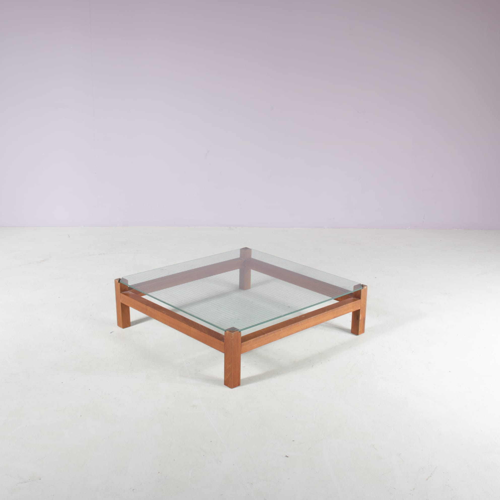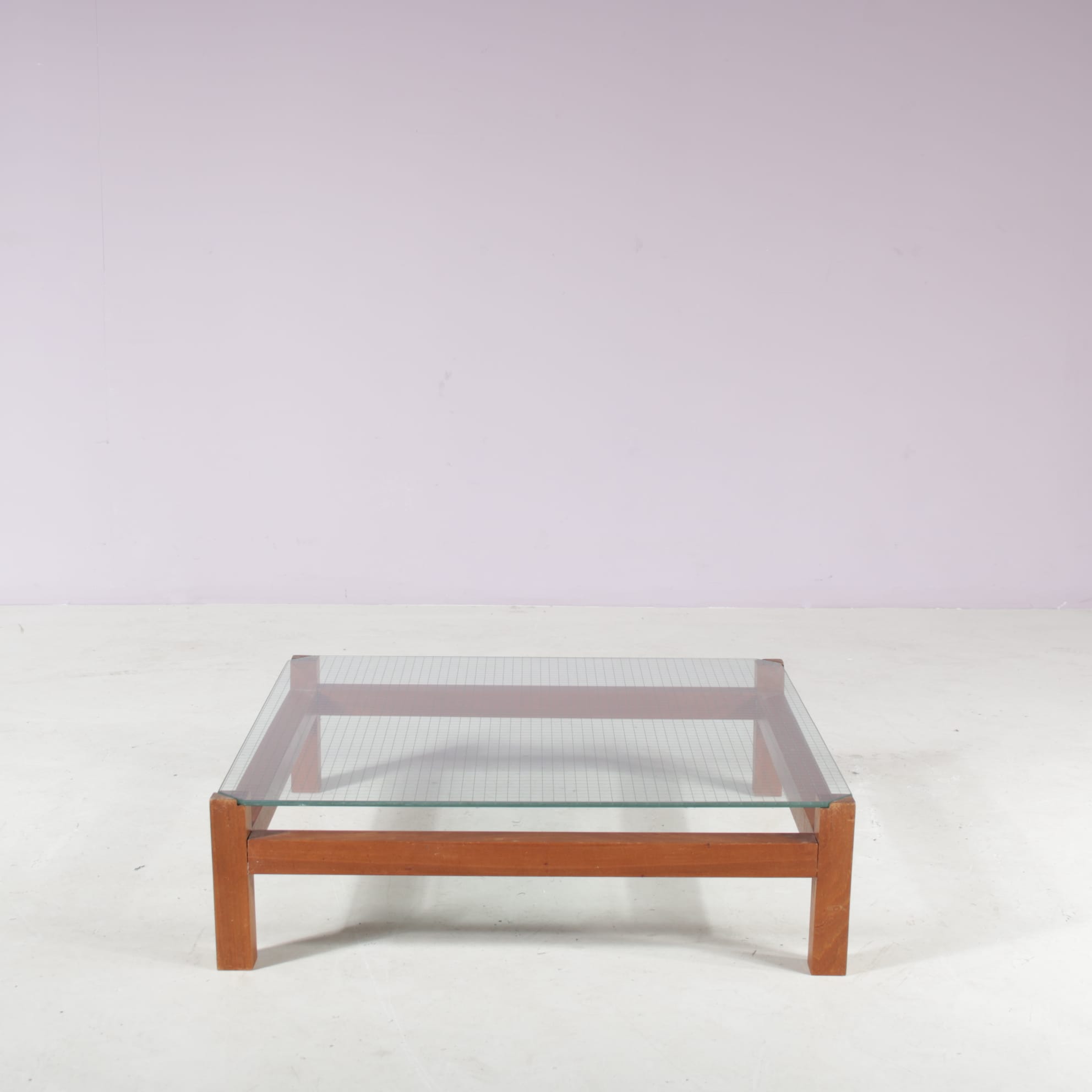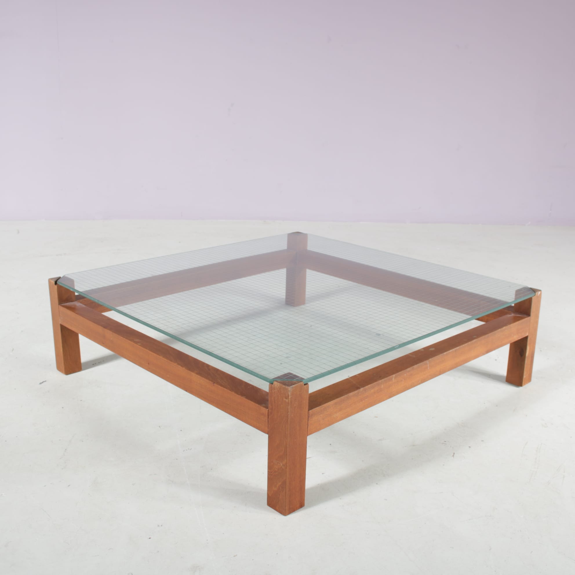 A beautiful low square coffee table, manufactured in the Netherlands in the 1960s.