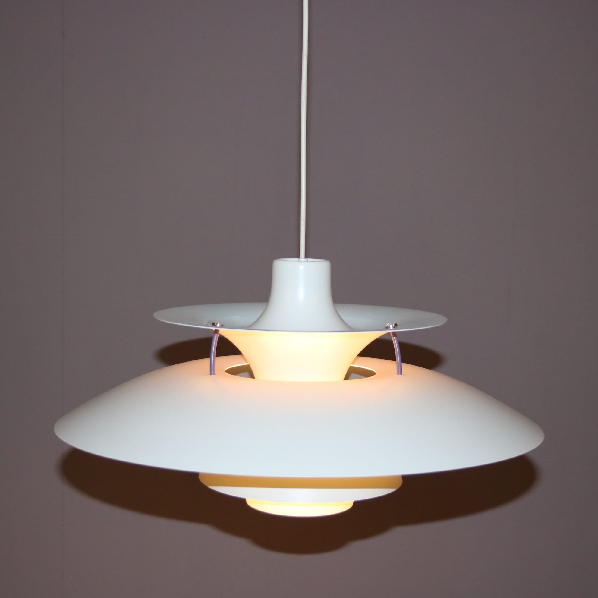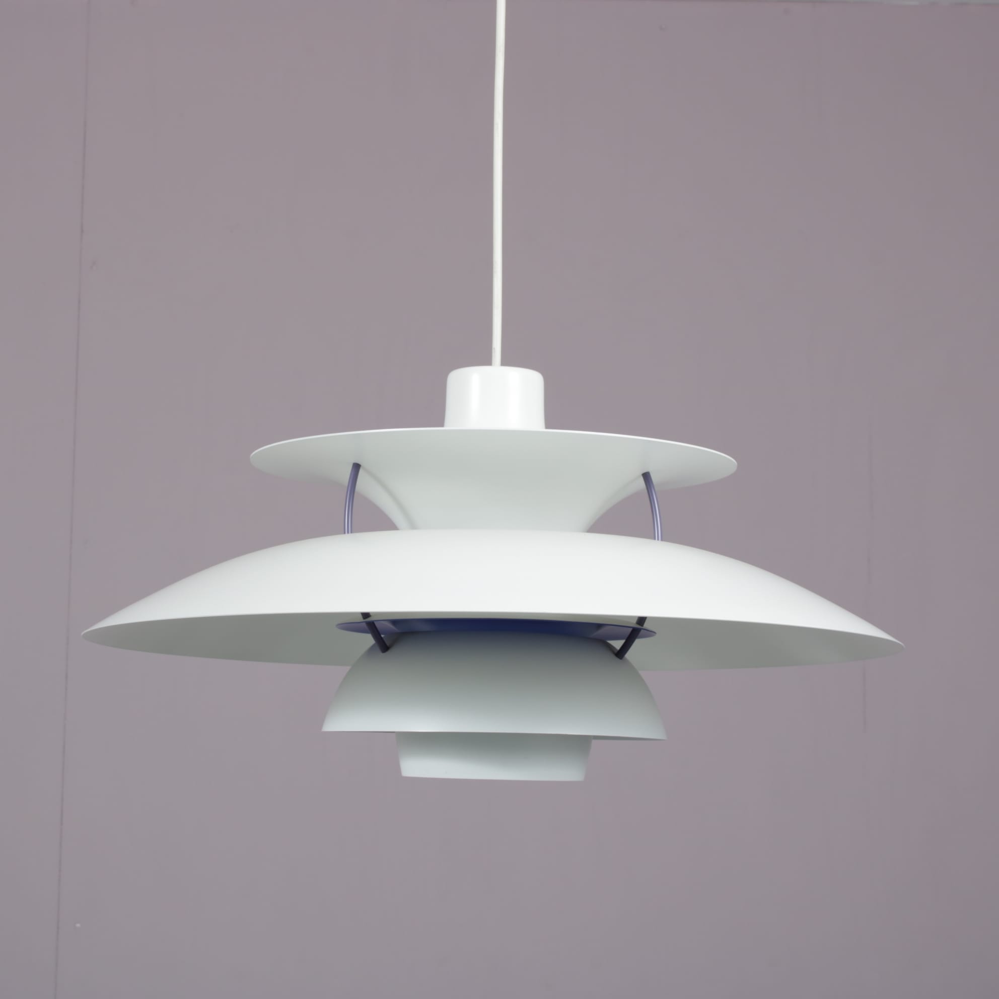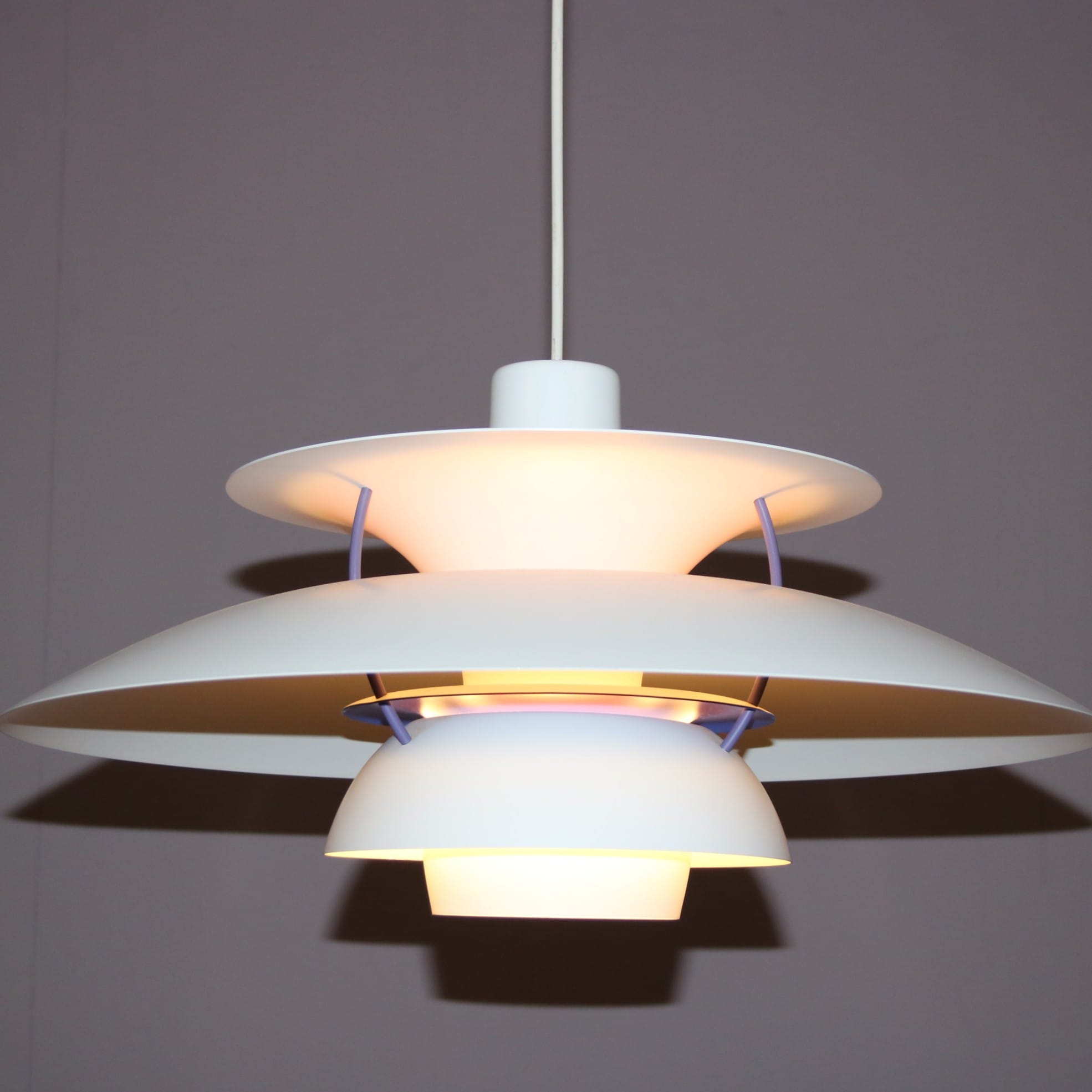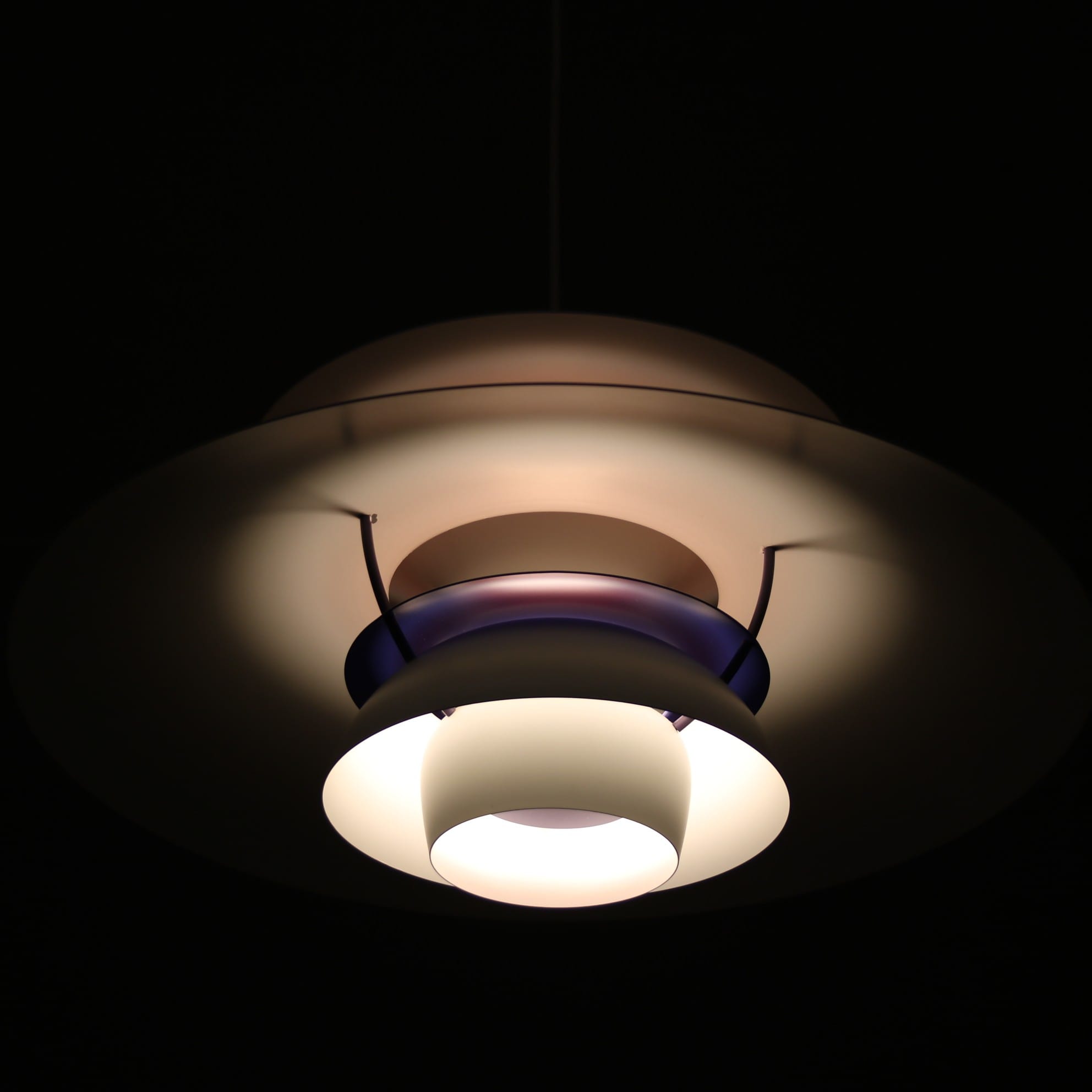 A beautiful hanging lamp, model PH5, designed by Poul Henningsen and manufactured by Louis Poulsen in Denmark around 1960.