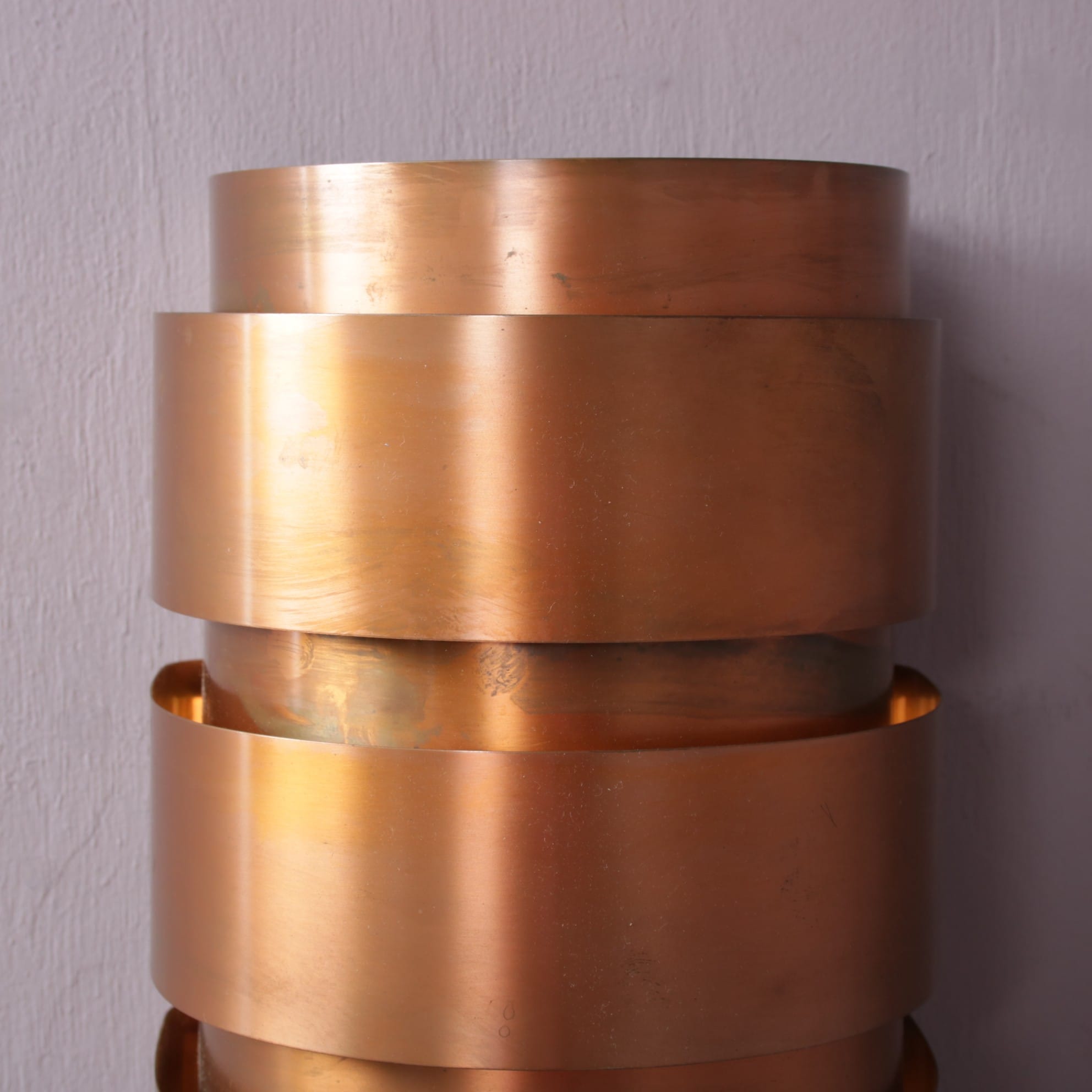 This iconic lamp features a sculptural design with overlapping copper bands, creating a warm, atmospheric glow when lit. It’s minimalist yet expressive style makes it a typical mid-century Scandinavian piece by one of the most praised designers of the era! It will add warmth, style and modernism to the decor and will be a valuable decorative touch to any space.