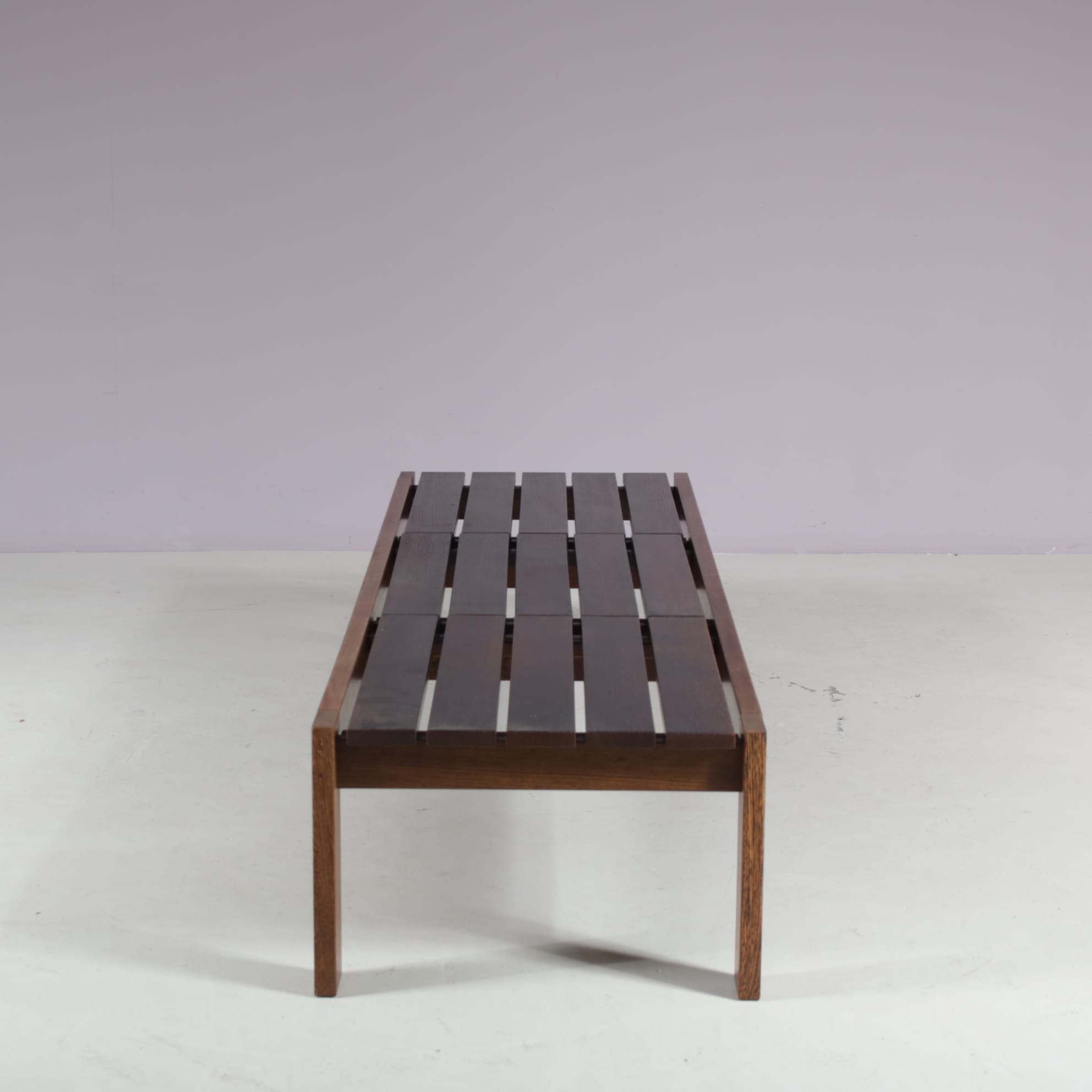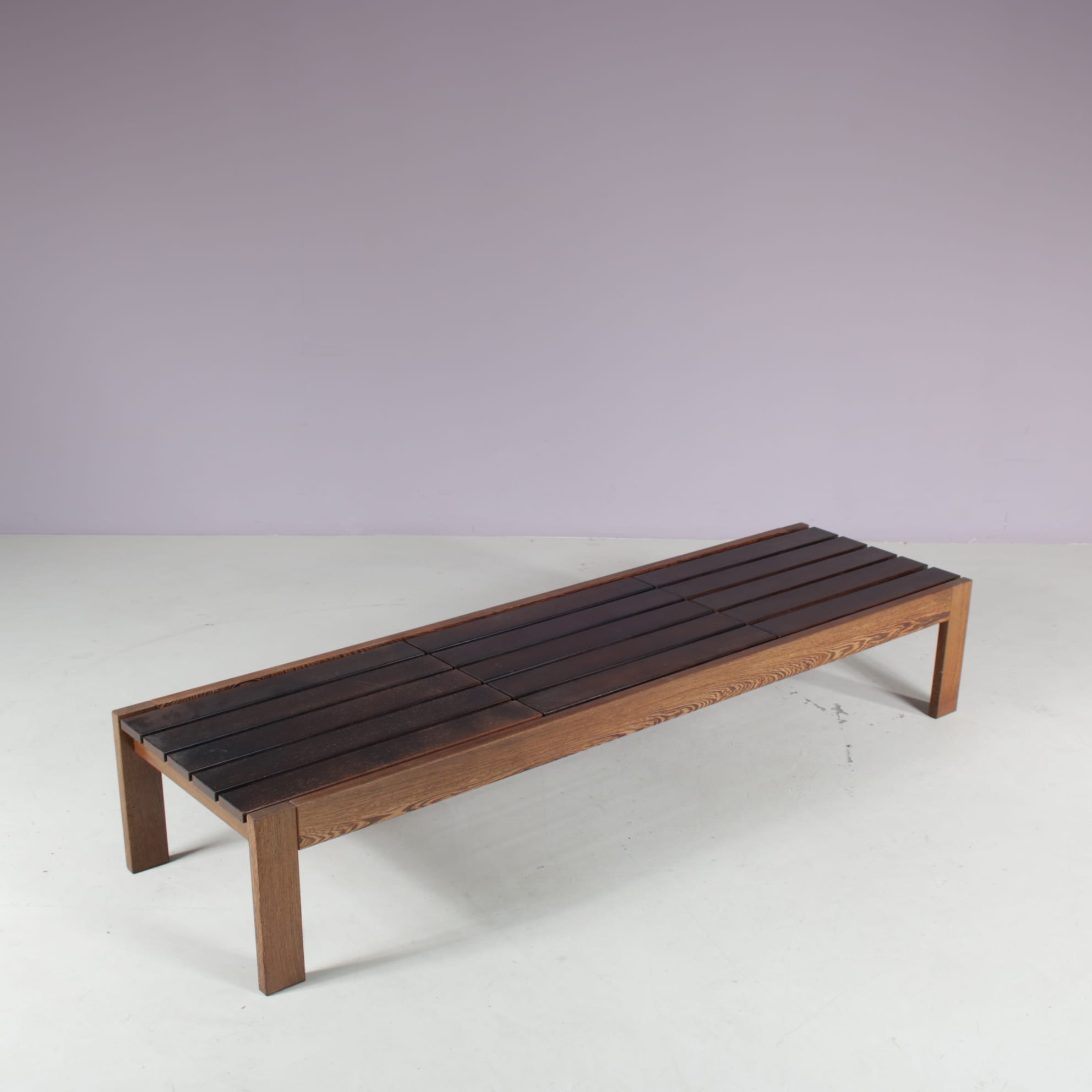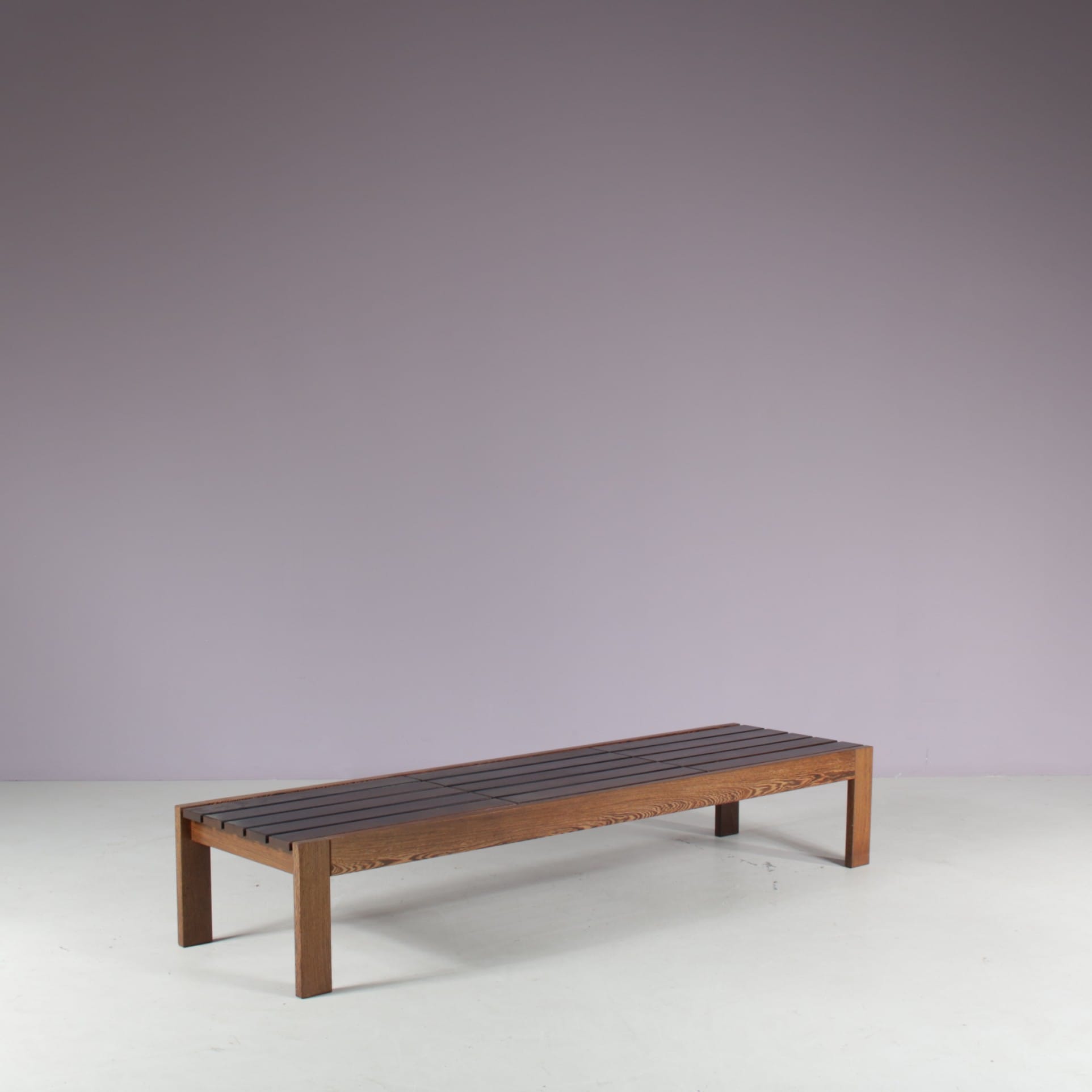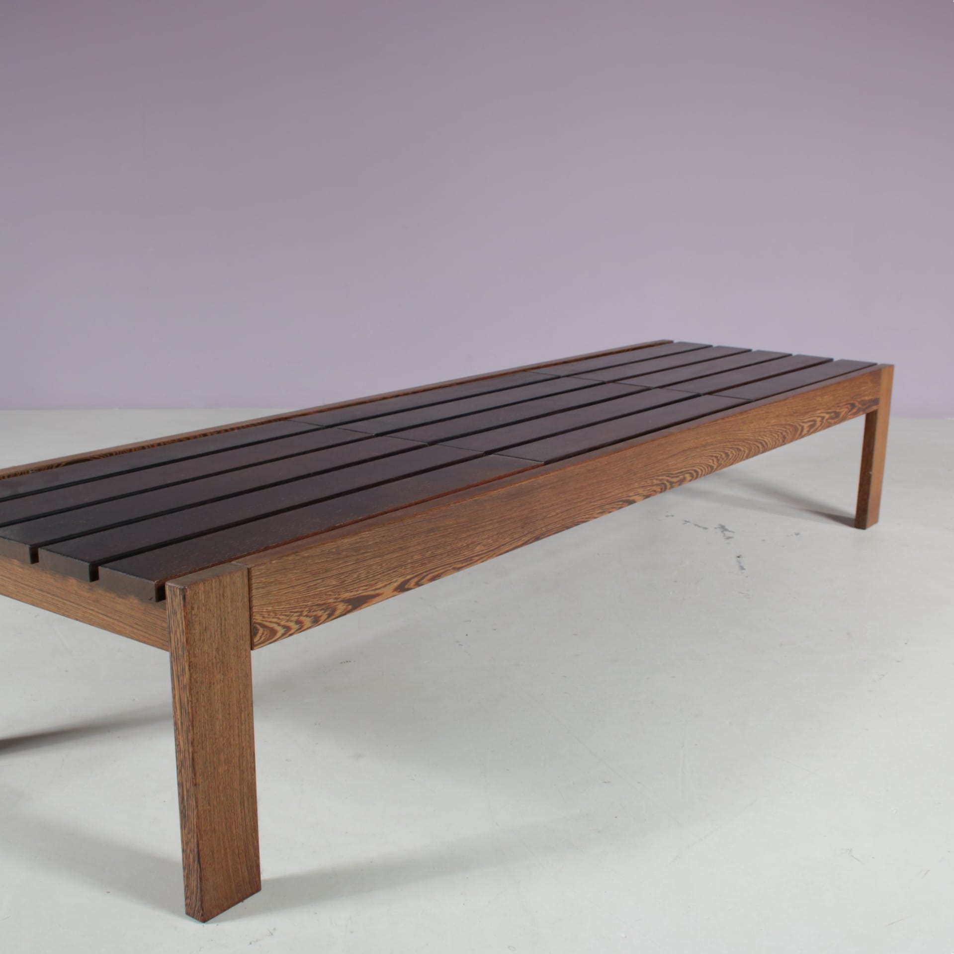 1960s Wengé wooden slat bench from the Netherlands