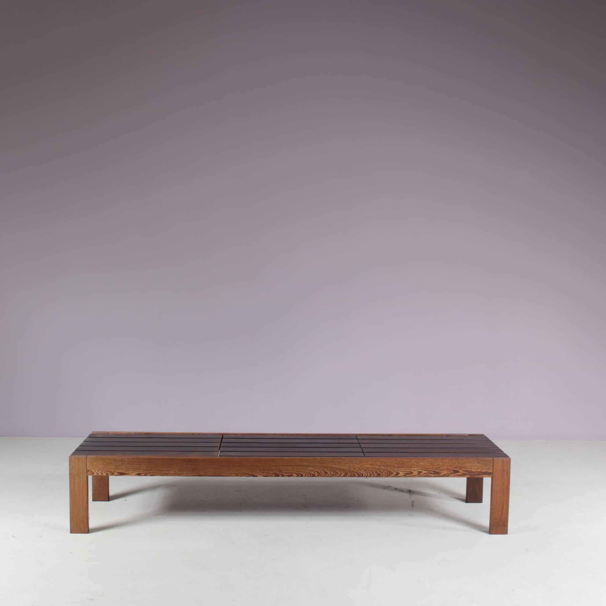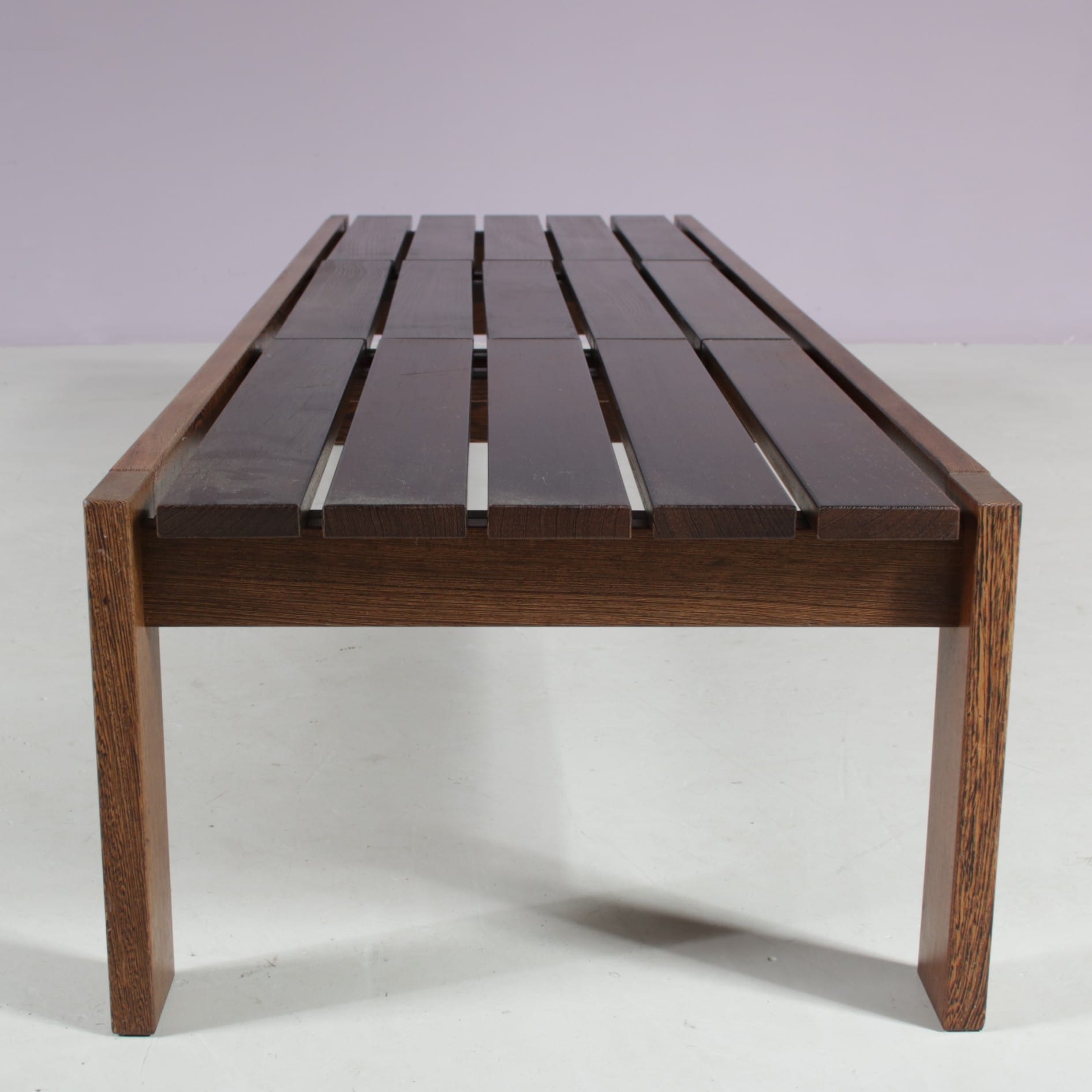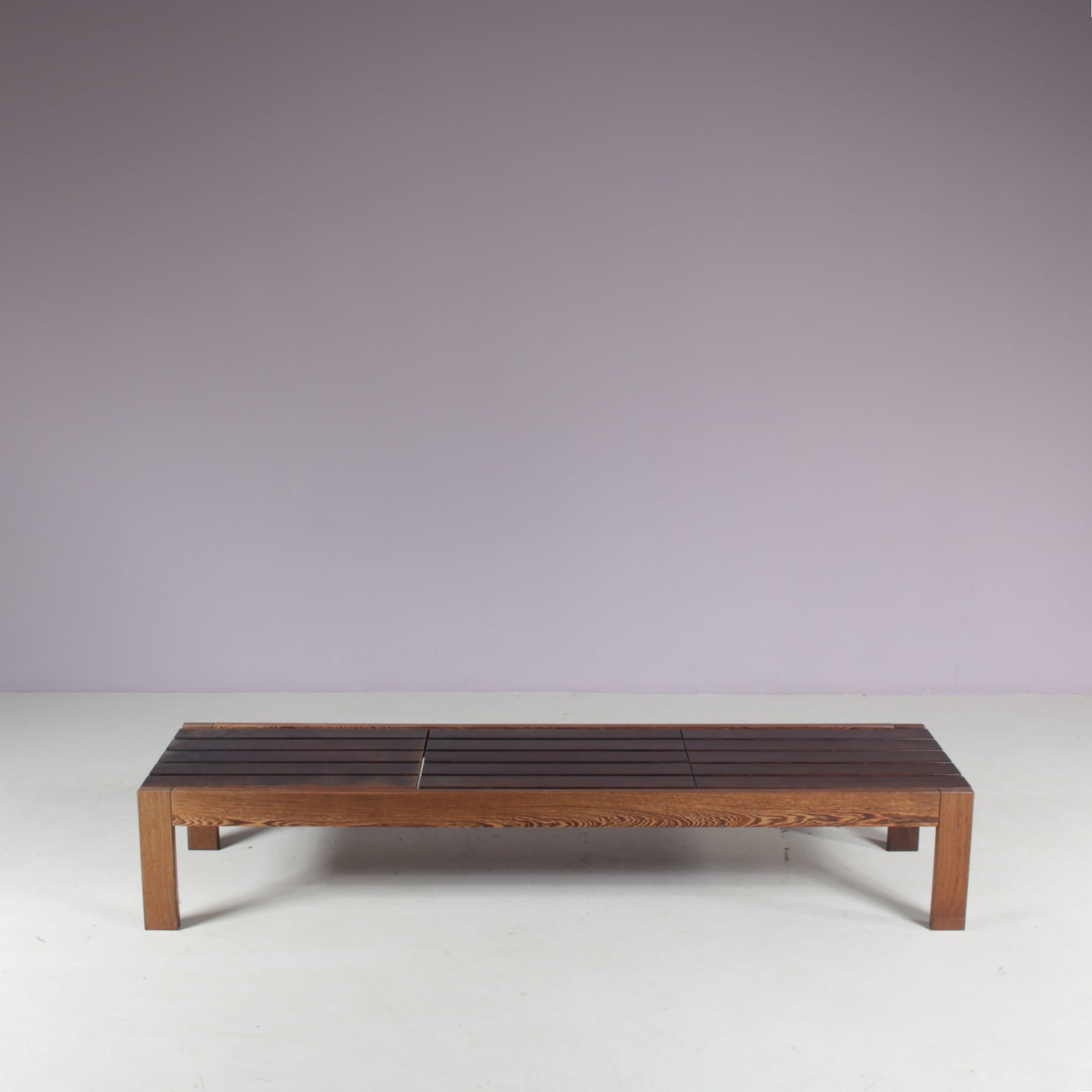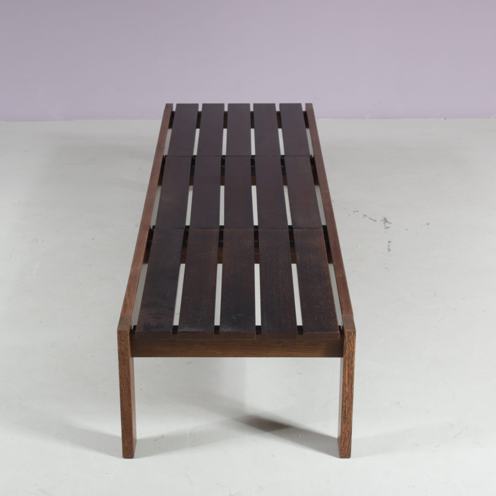 1960s Wengé wooden slat bench from the Netherlands