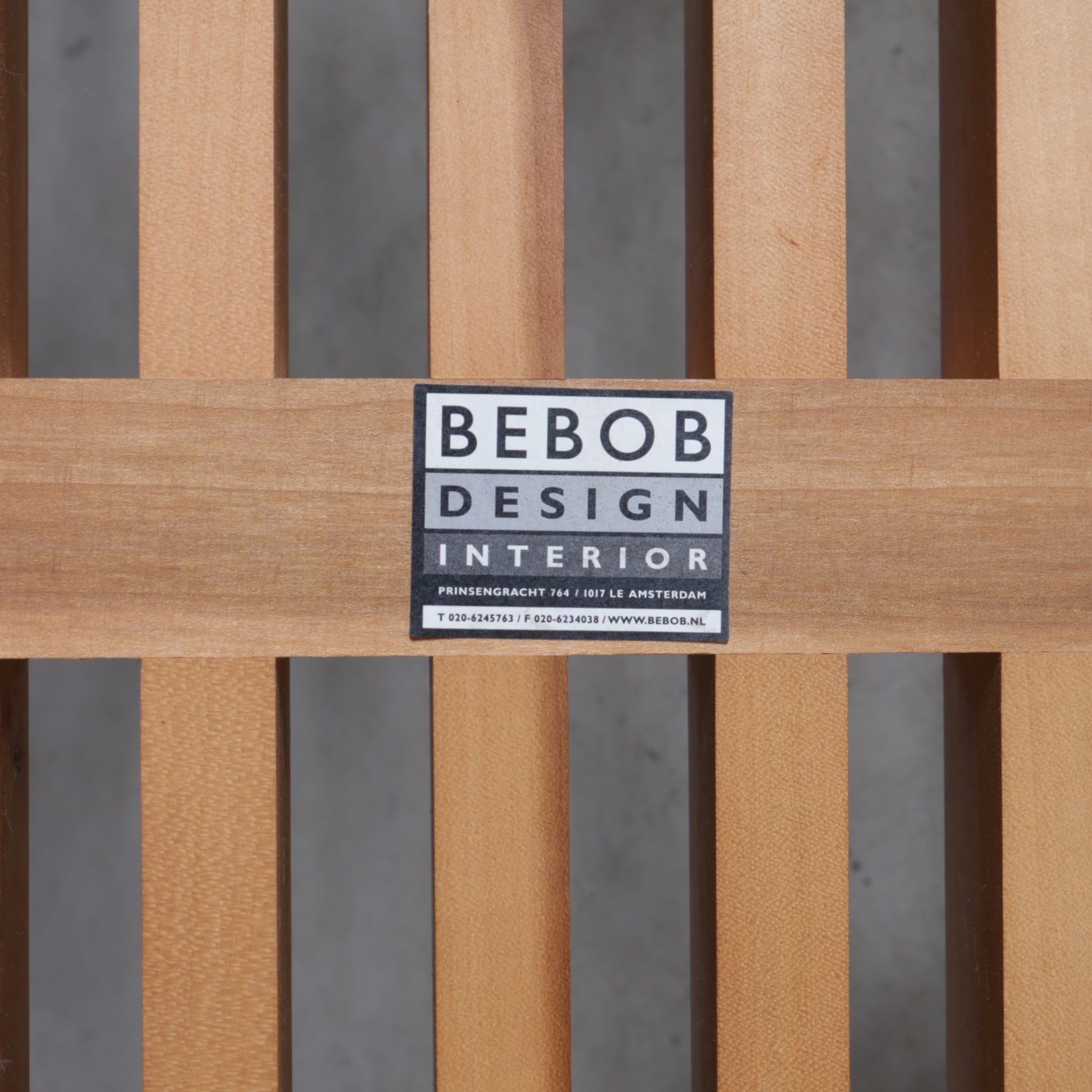 m28233 1970s Small walnut wooden bench George Nelson stickered Bebob, Netherlands
