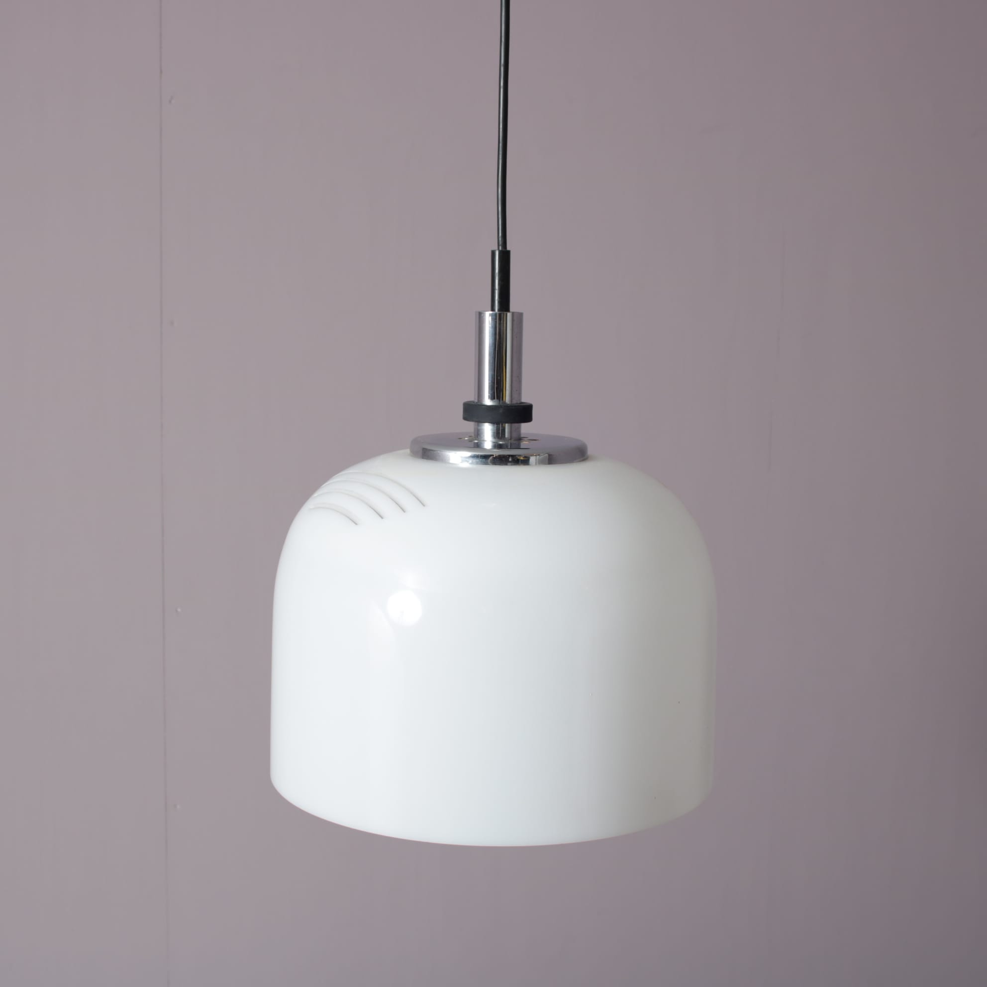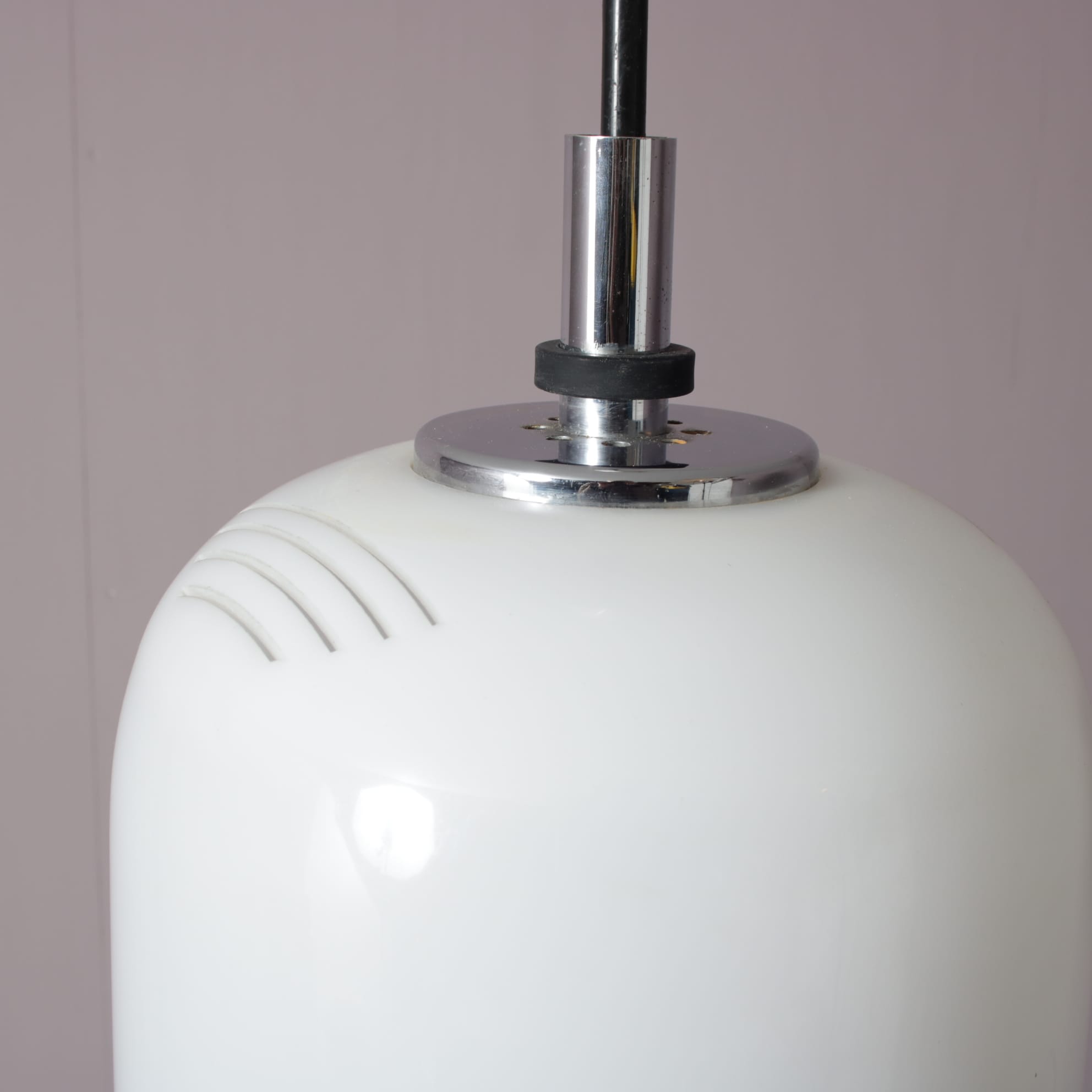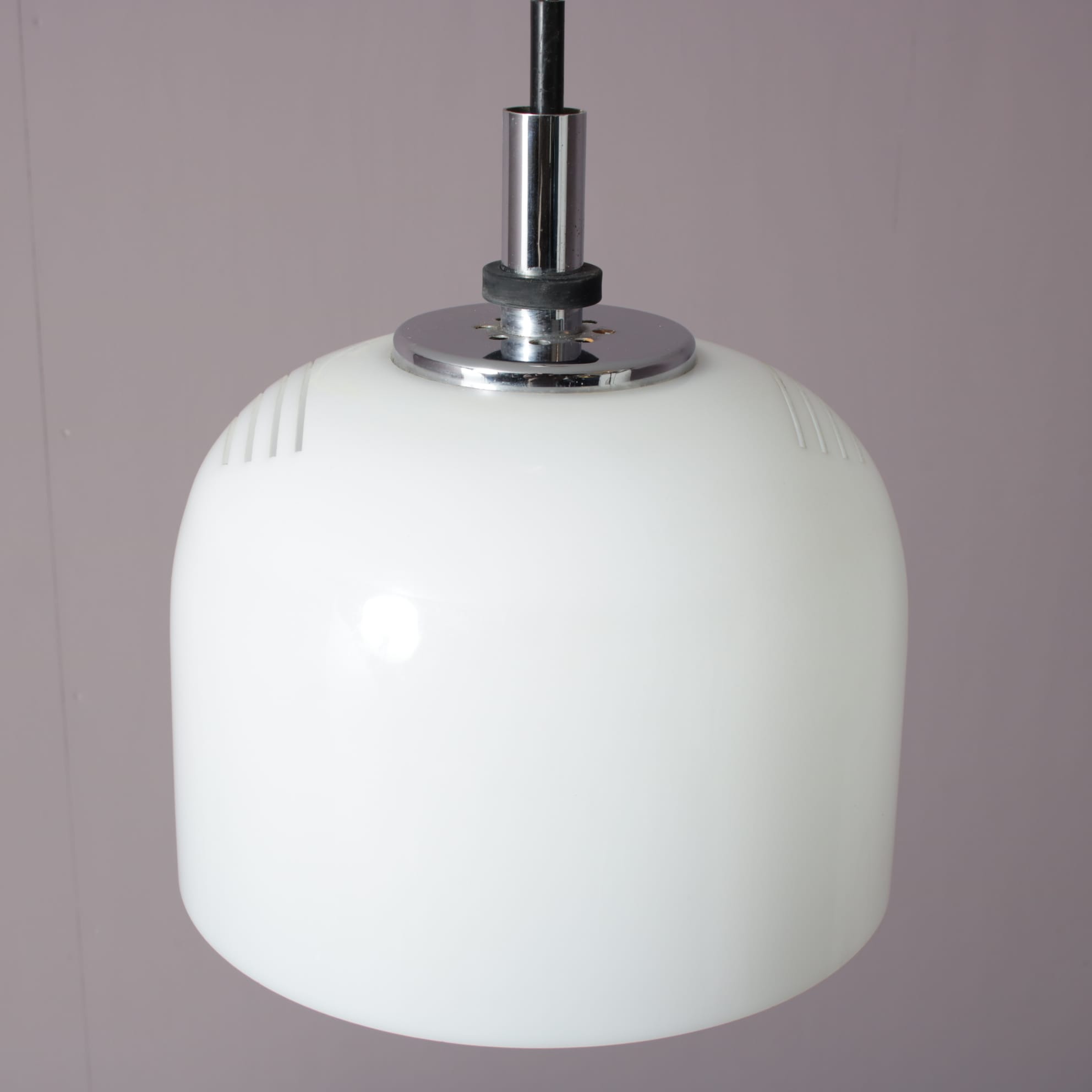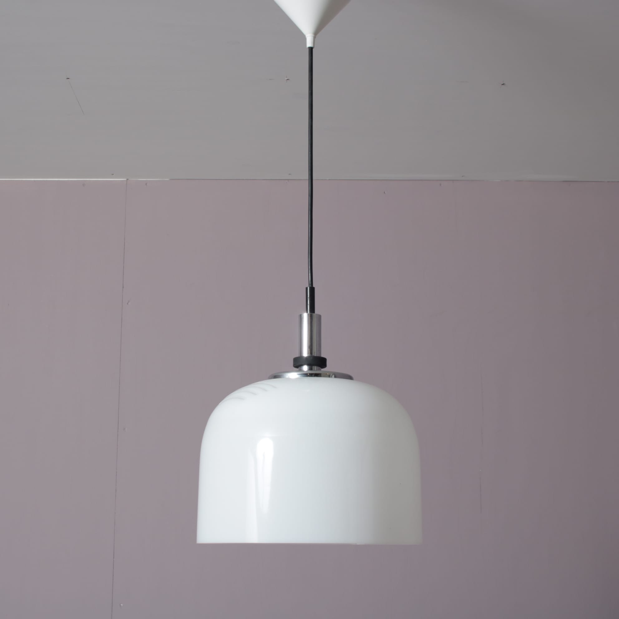 L5376 1970s White perspex hanging lamp with chrome details Raak, Netherlands
