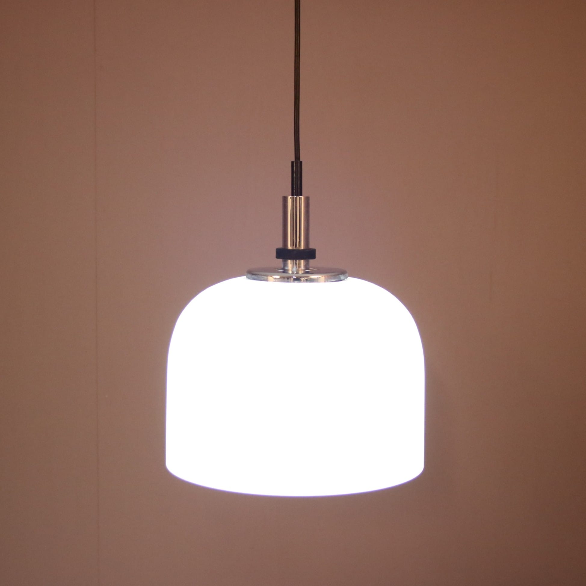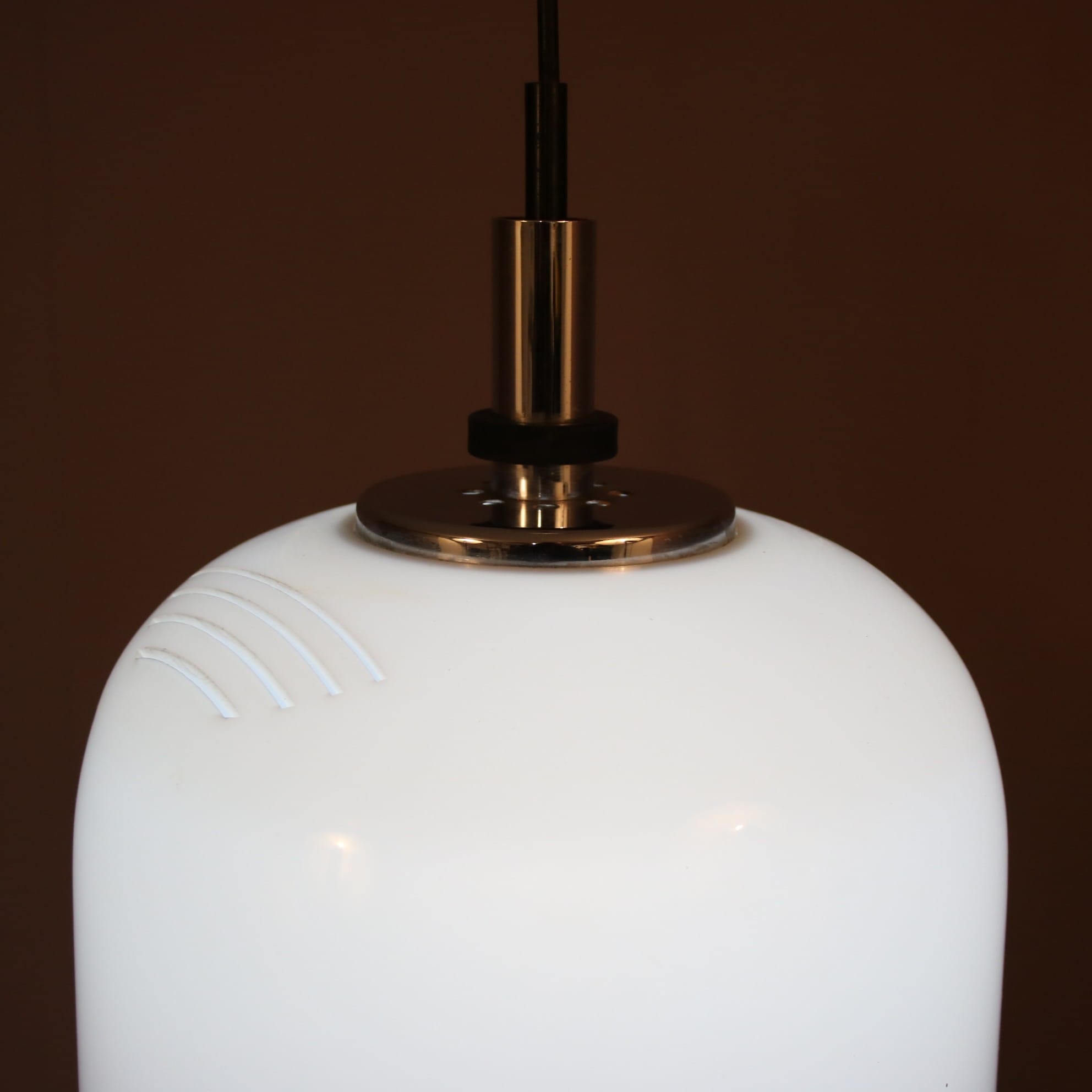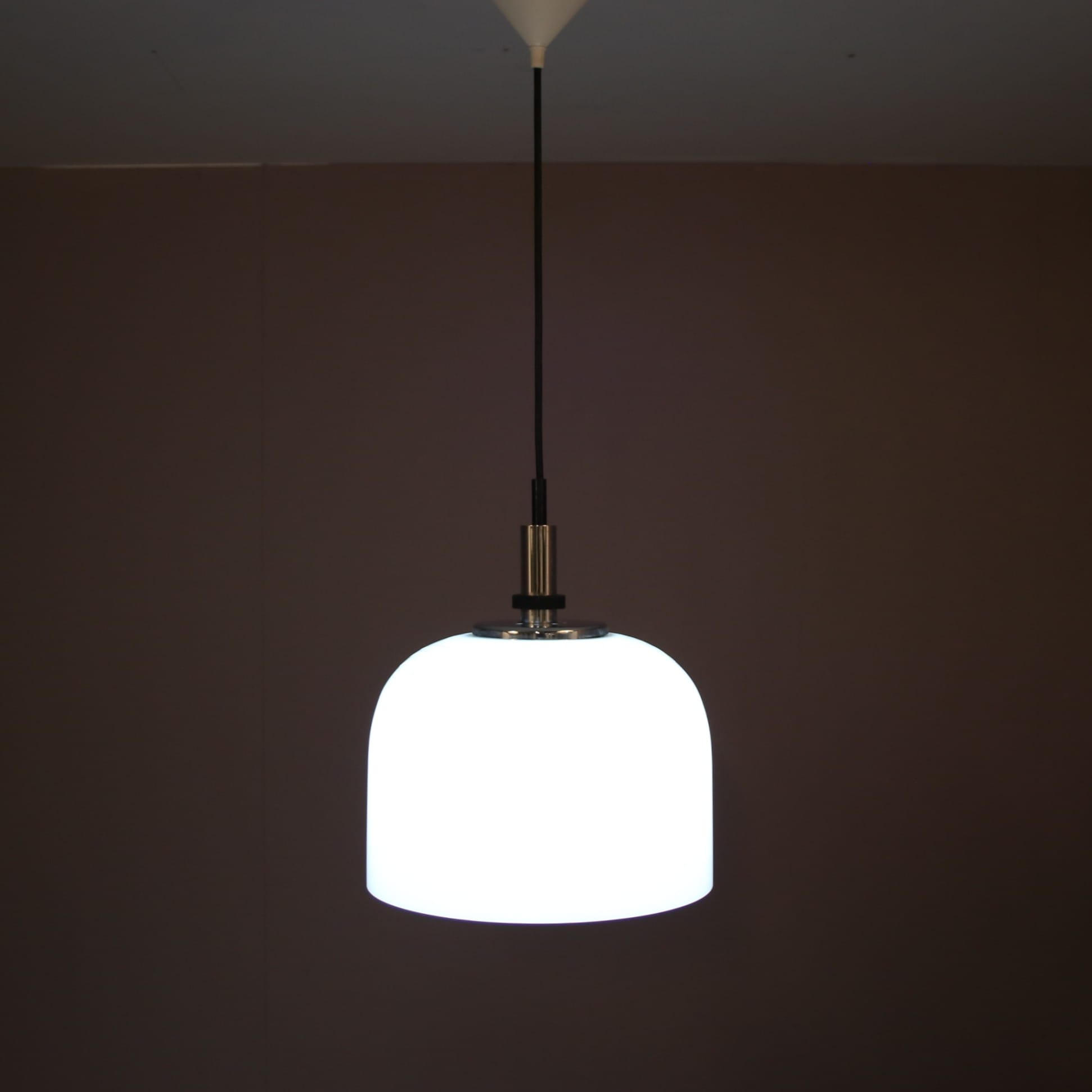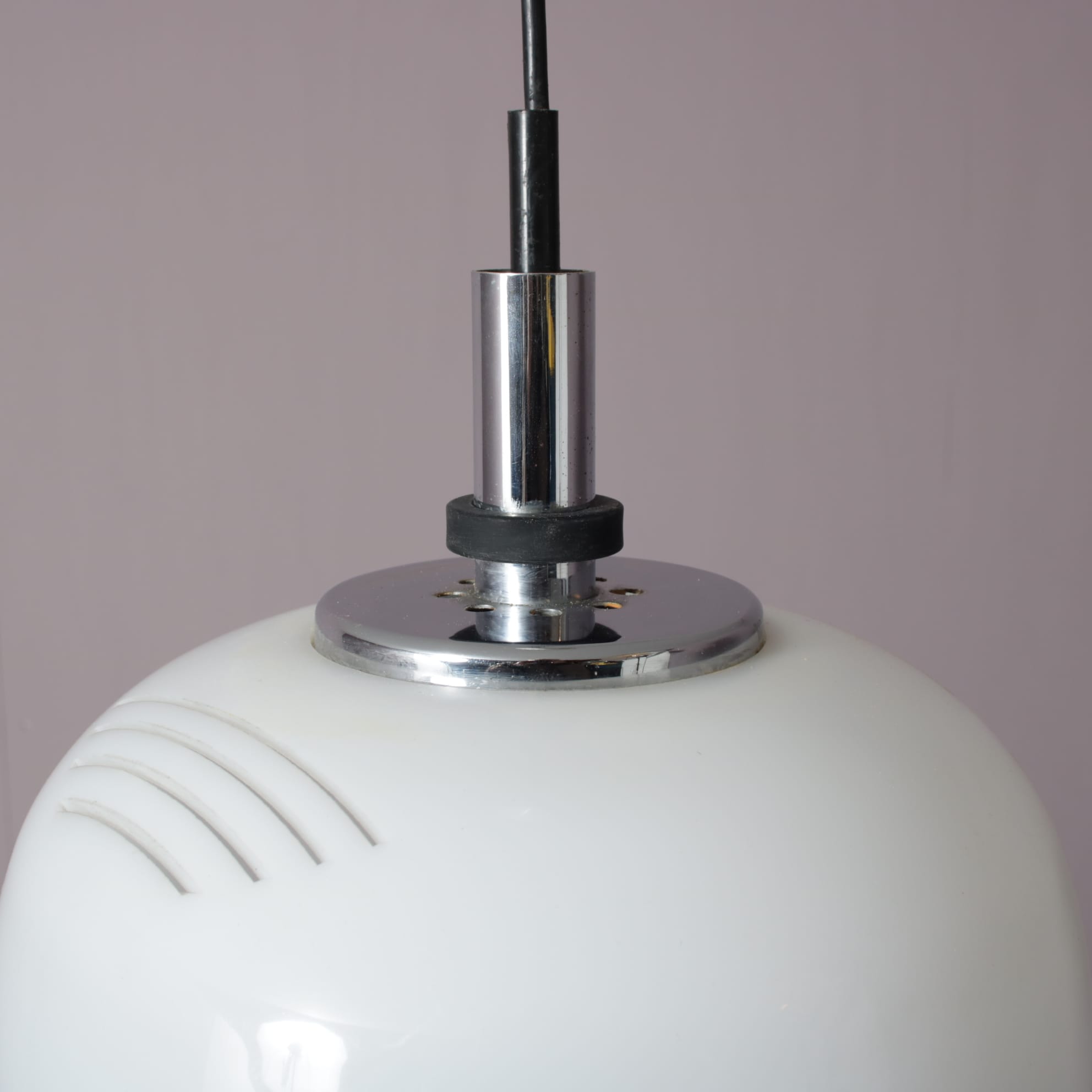 L5376 1970s White perspex hanging lamp with chrome details Raak, Netherlands