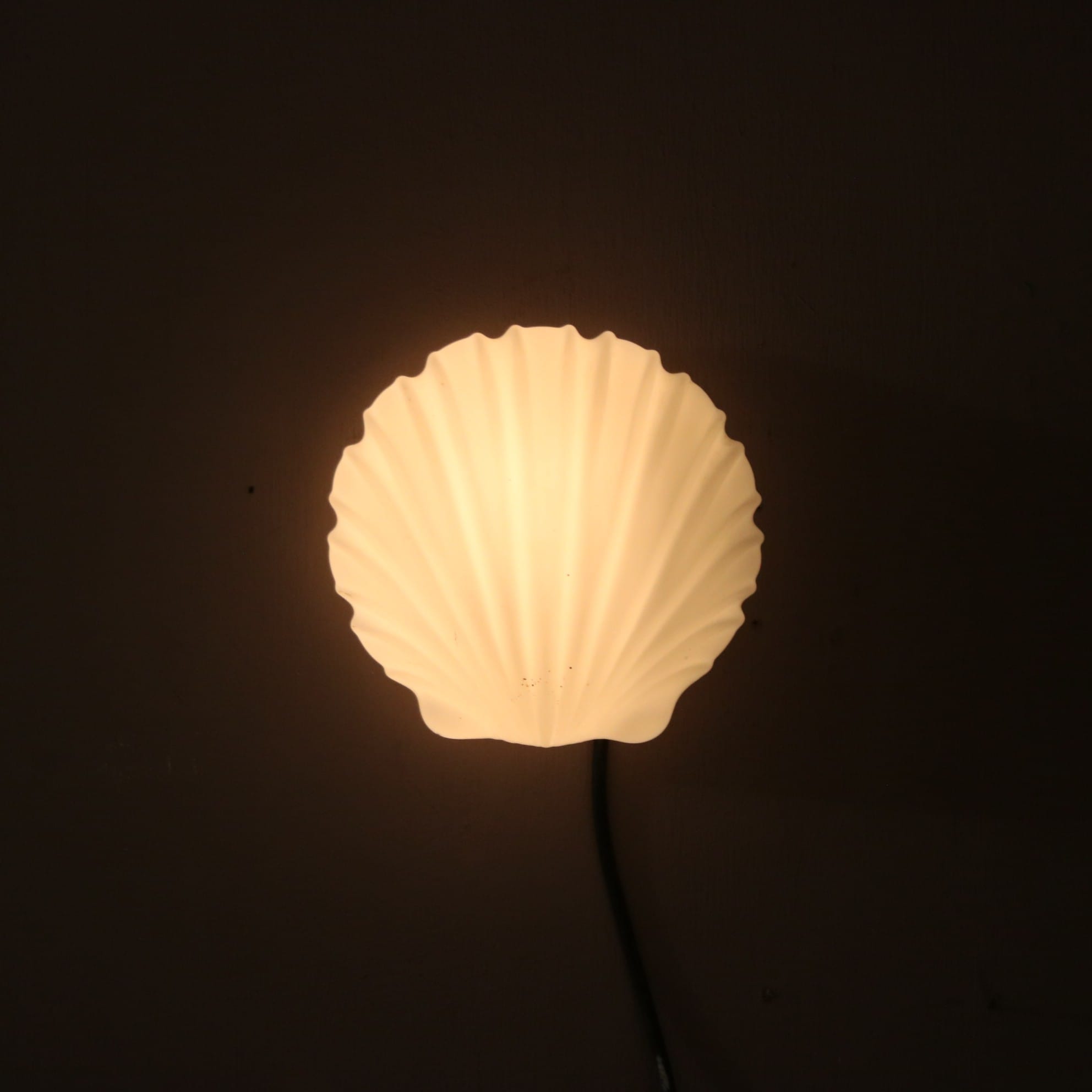 This elegant little lamp is made of high quality opaline glass, crafted with a nice eye for detail and shaped into that of a sea shell. It emits a lovely warm light when lit, gently diffused through the white glass, and adding a nice depth to the design. A very nice, sophisticated addition to any decor!