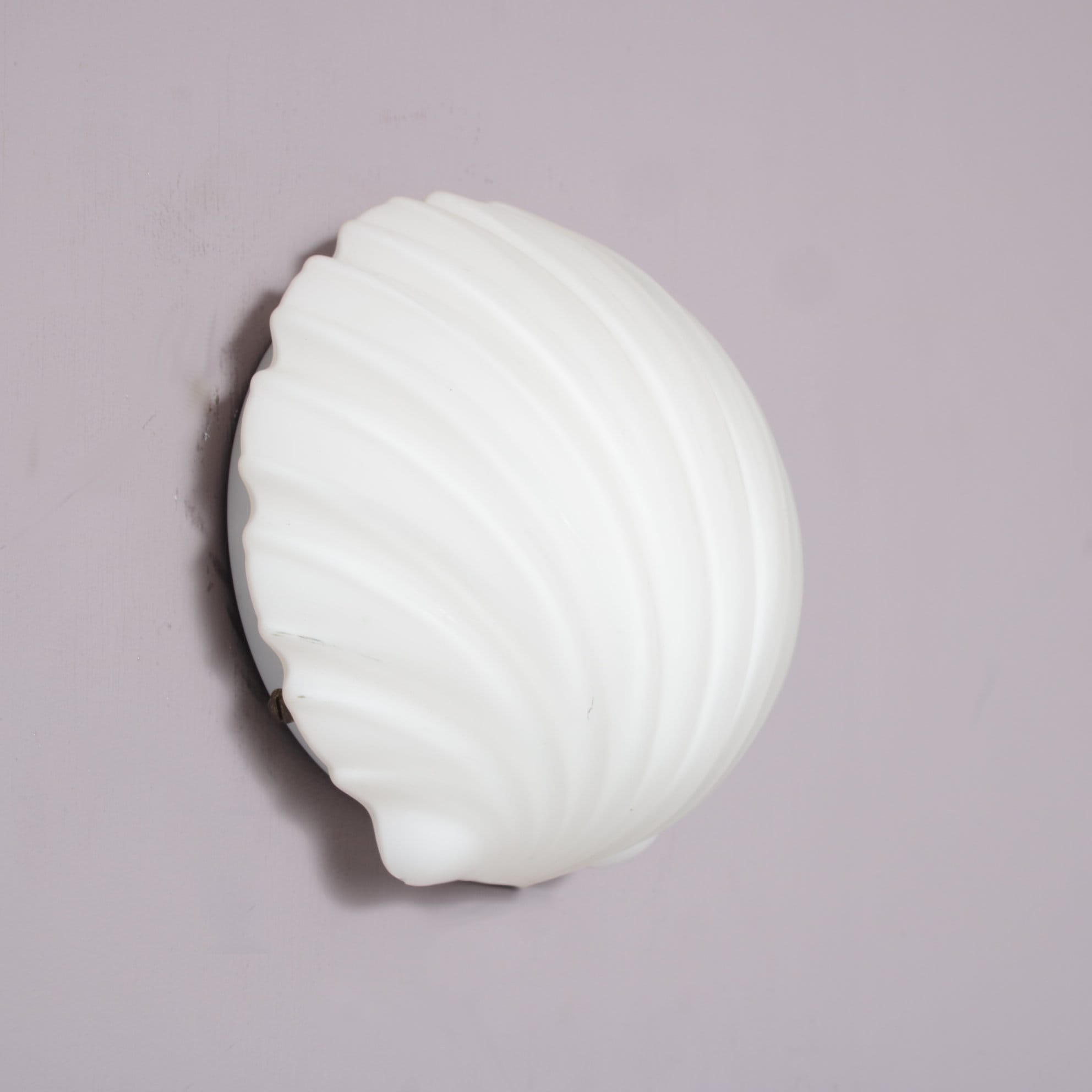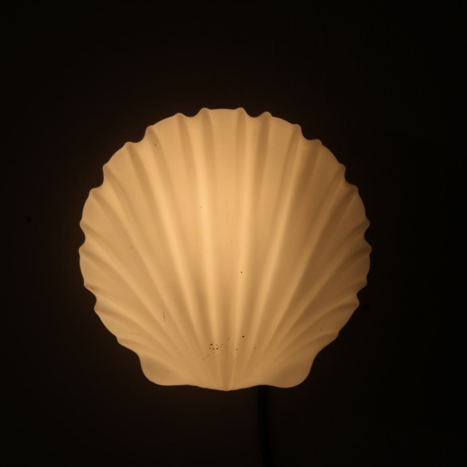 A lovely wall lamp in shell shape, manufactured by Glashütte Limburg in Germany around 1970.