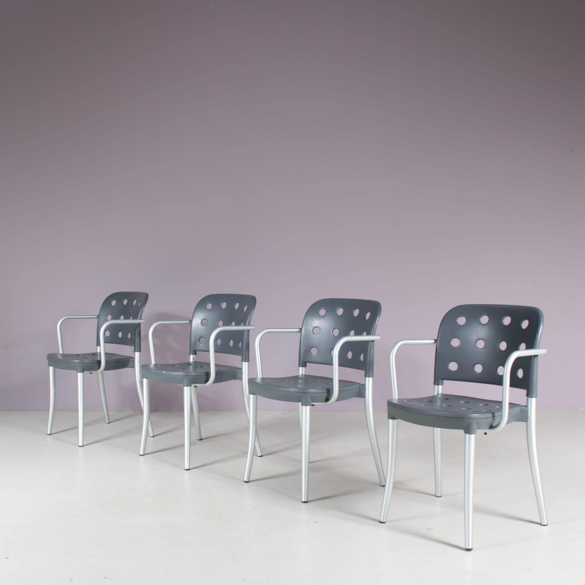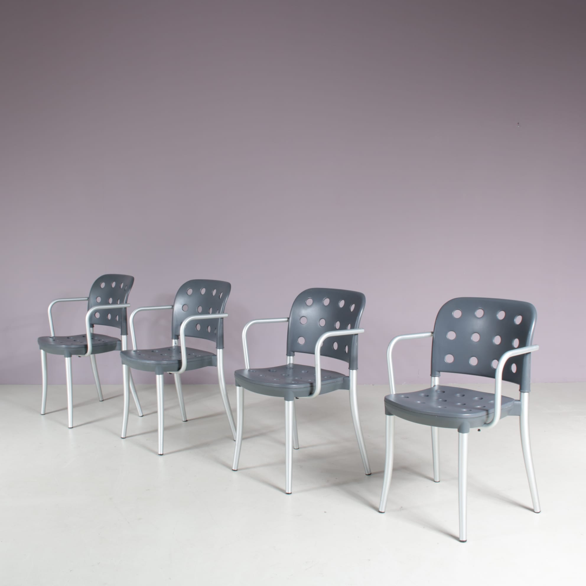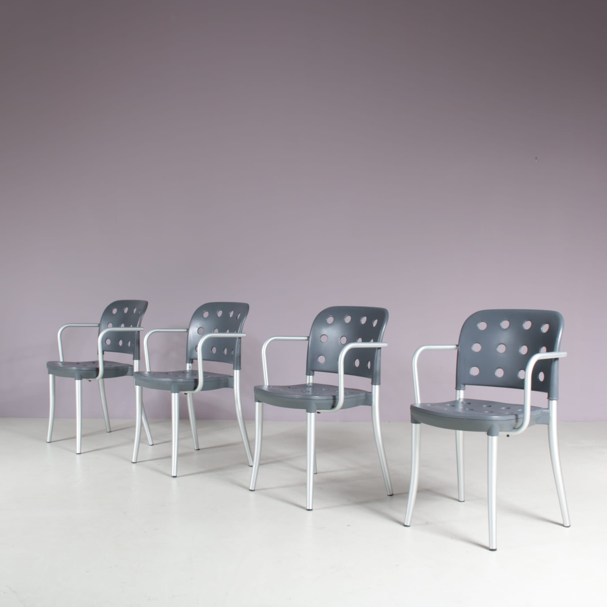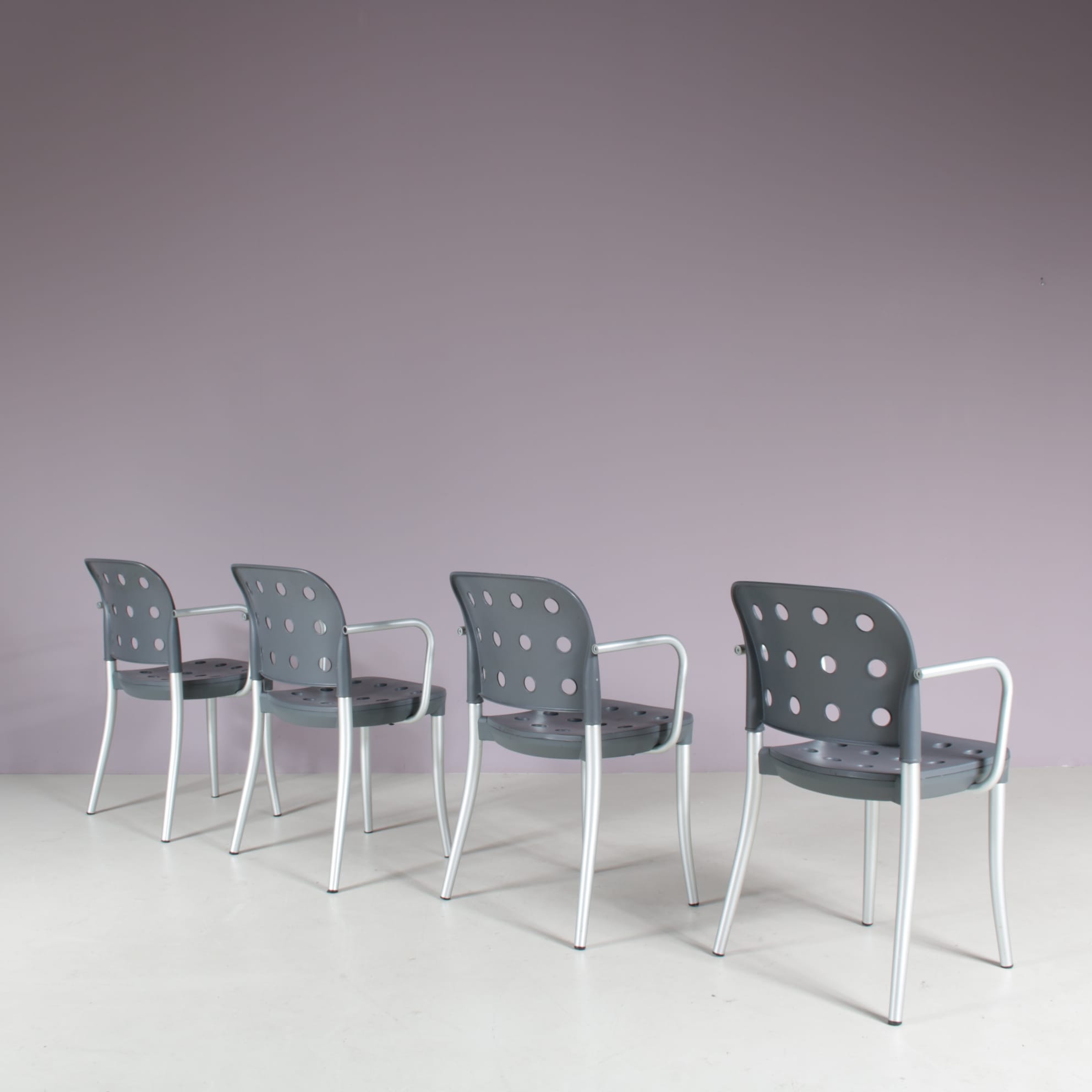 2511 2 m28130 1980s Set of 4 “Minni” dining chais in aluminium with plastic back and seat / Antonio Citterio / Halifax, Italy(46) m28130 1980s Set of 4 Minni dining chais in aluminium with plastic back and seat Antonio Citterio Halifax, Italy