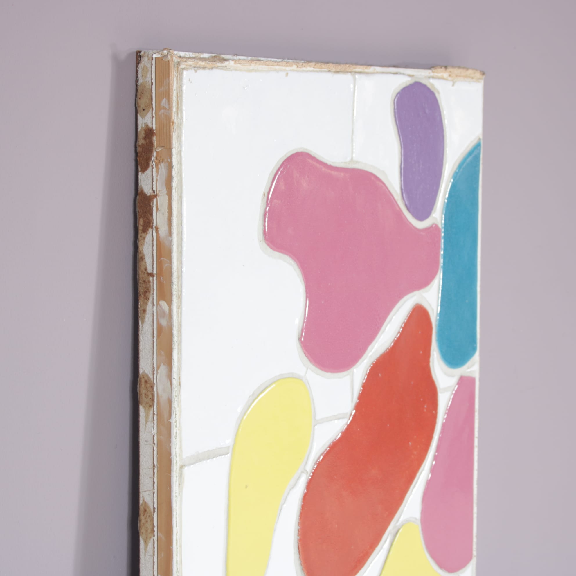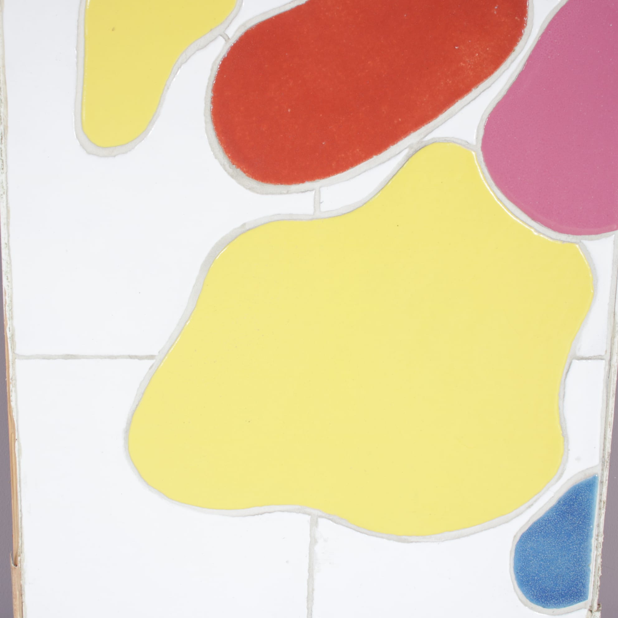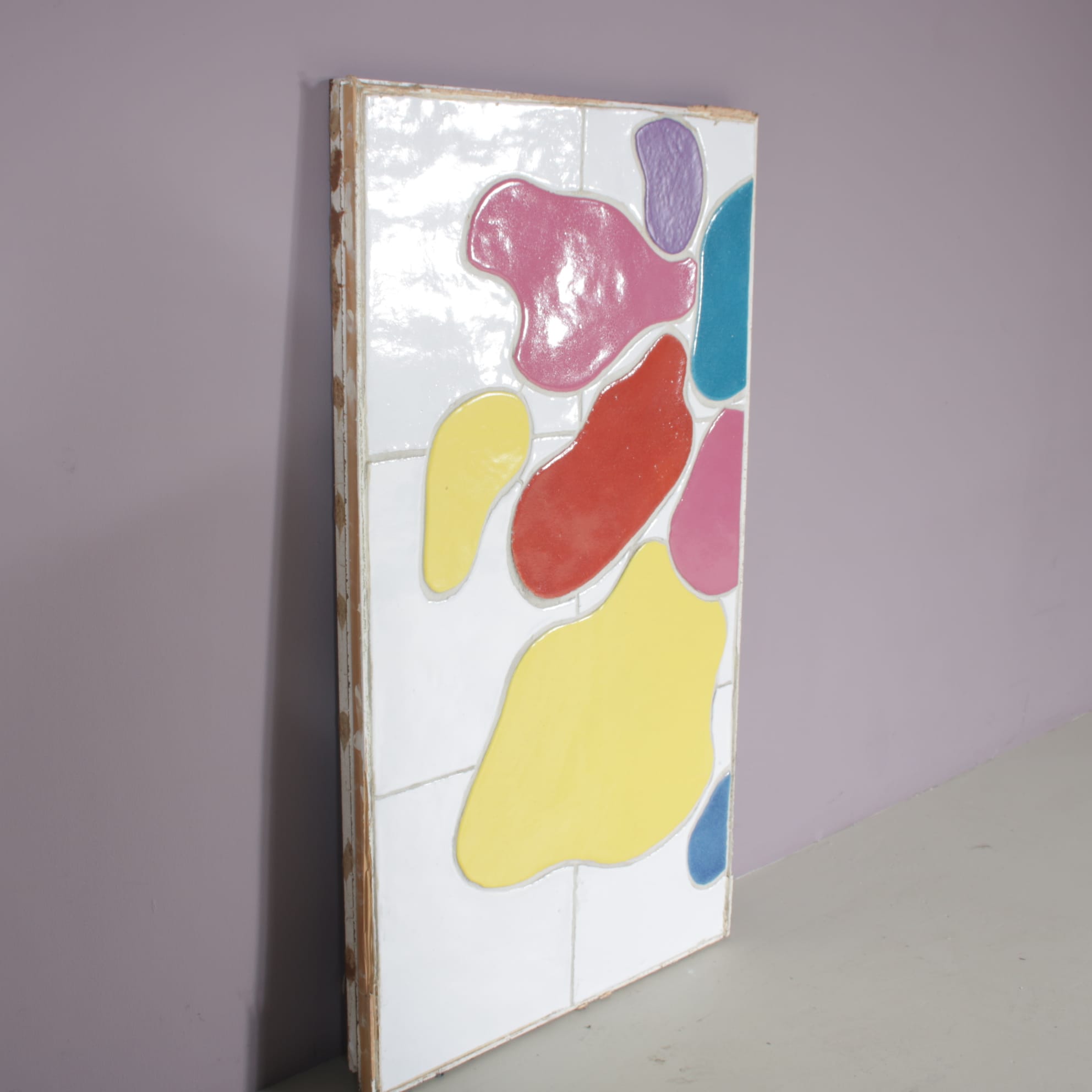 This very nice, colourful artwork was originally used in the MS Volendam ship and designed by famous Dutch artist Jan Snoeck (1927-2018). Made of beautiful ceramics in bright colours, a tile pattern layer covered with organic shaped, laid in colourful pieces. The bright use of colour as well as it’s playful style is typical for Snoeck’s art. The piece remains unframed, but framing could be arranged, please inform about the possibilities if you are interested in having it framed before purchasing. This wonderful art piece will definitely be an eye-catcher in any interior!