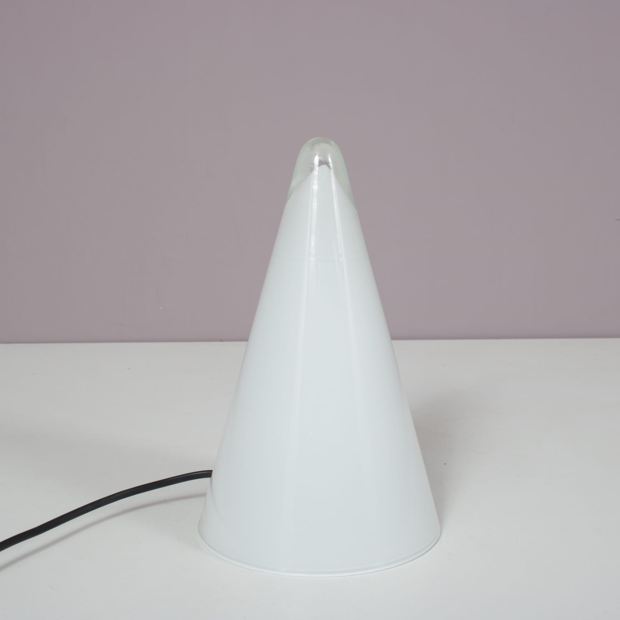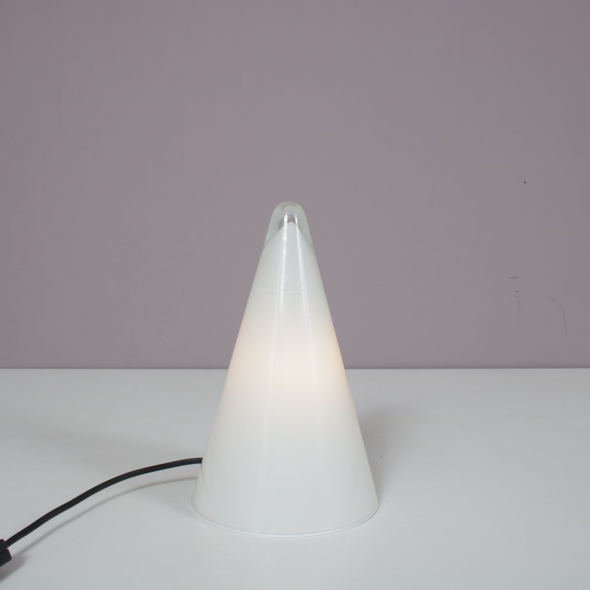 A lovely high quality white glass table lamp, model “TeePee”, manufactured by SCE in France around 1990.