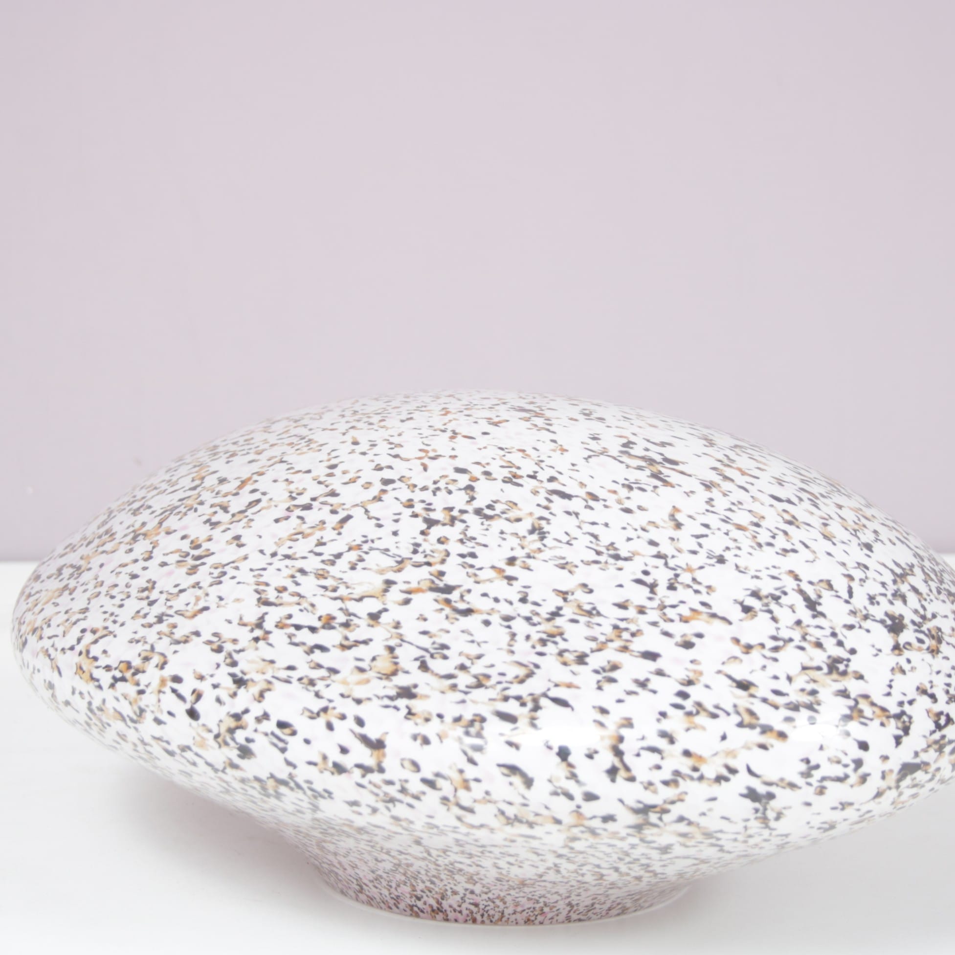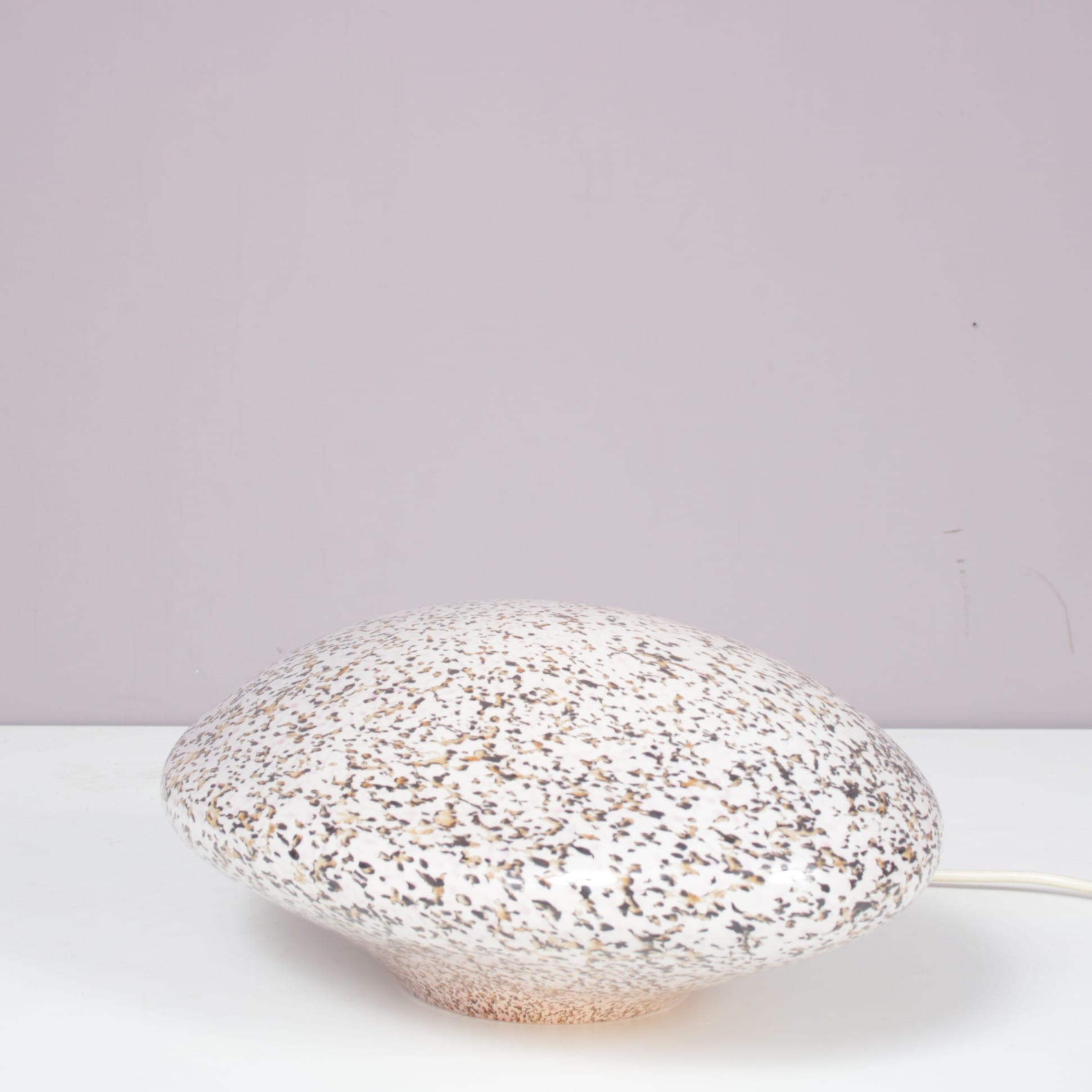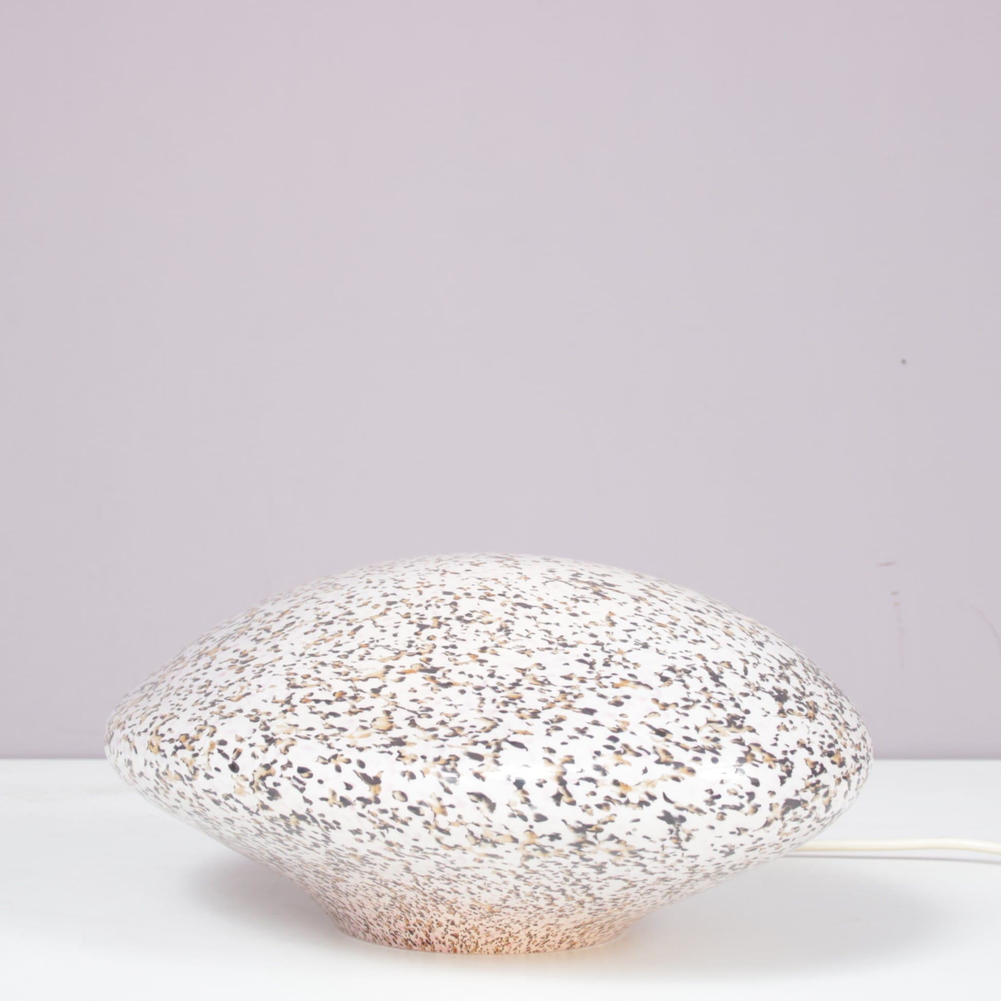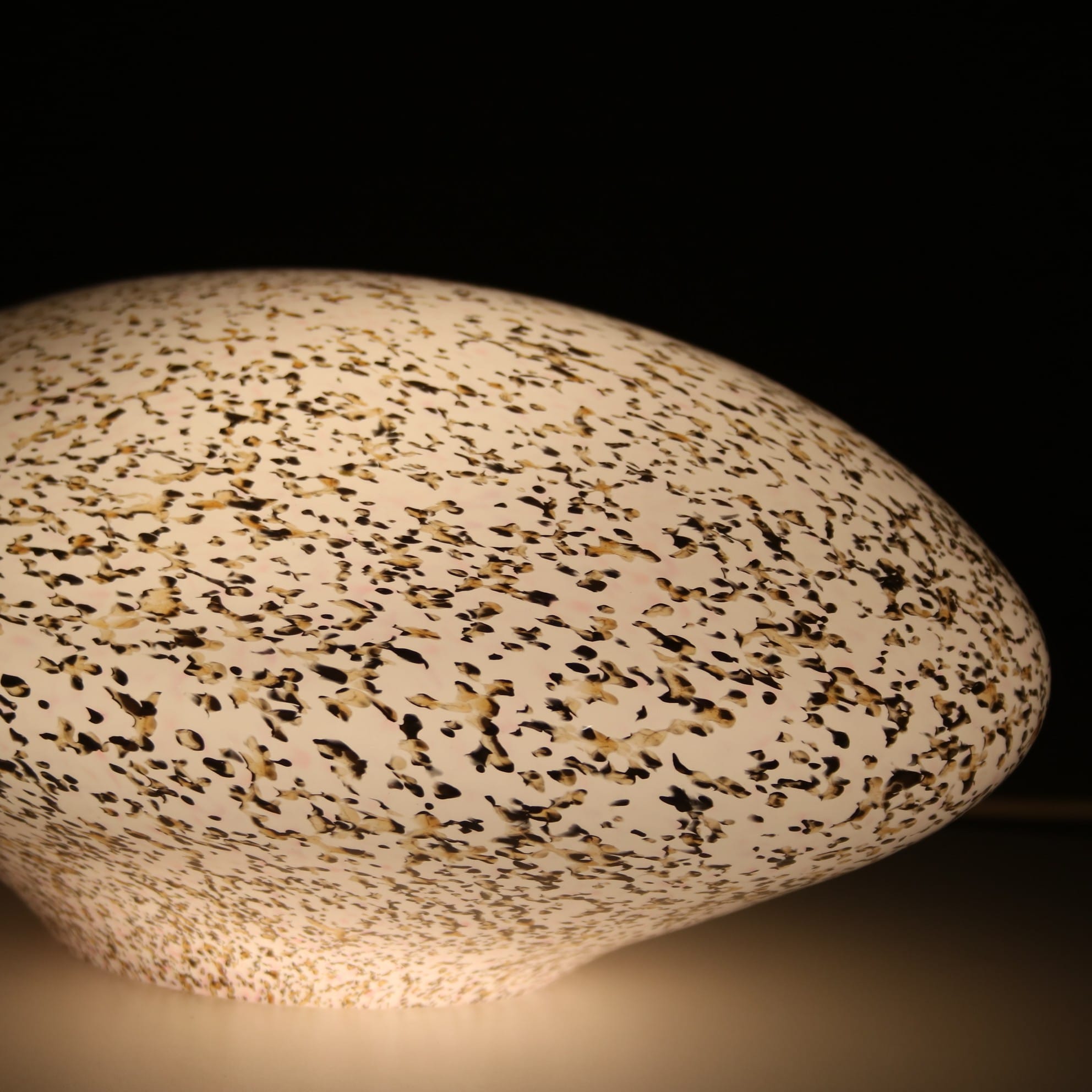This elegant lamp is crafted from high-quality Murano glass with a shape resembling a stone, giving it a soft, organic appearance. When lit, the glass diffuses a warm and gentle glow, creating a warm and atmospheric effect. A refined decorative piece that highlights the artistry of Italian glassmaking while adding charm and character to any interior!