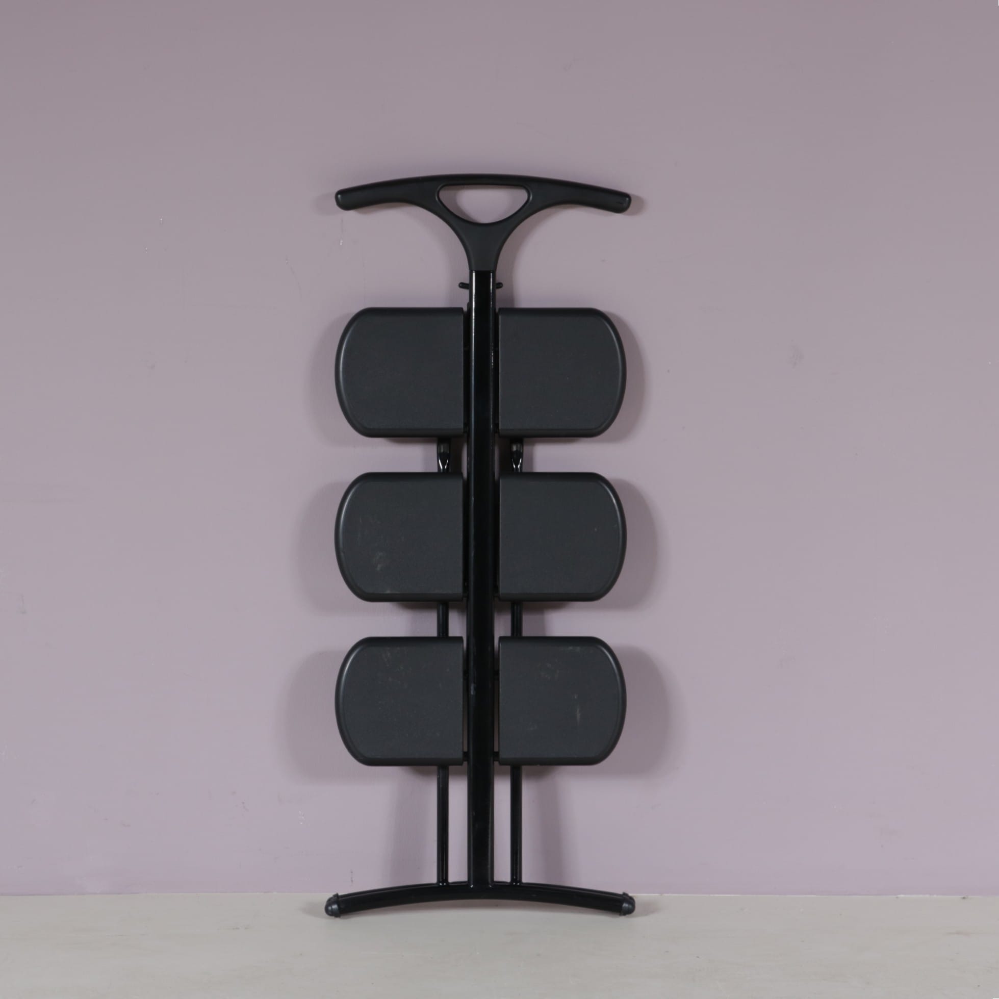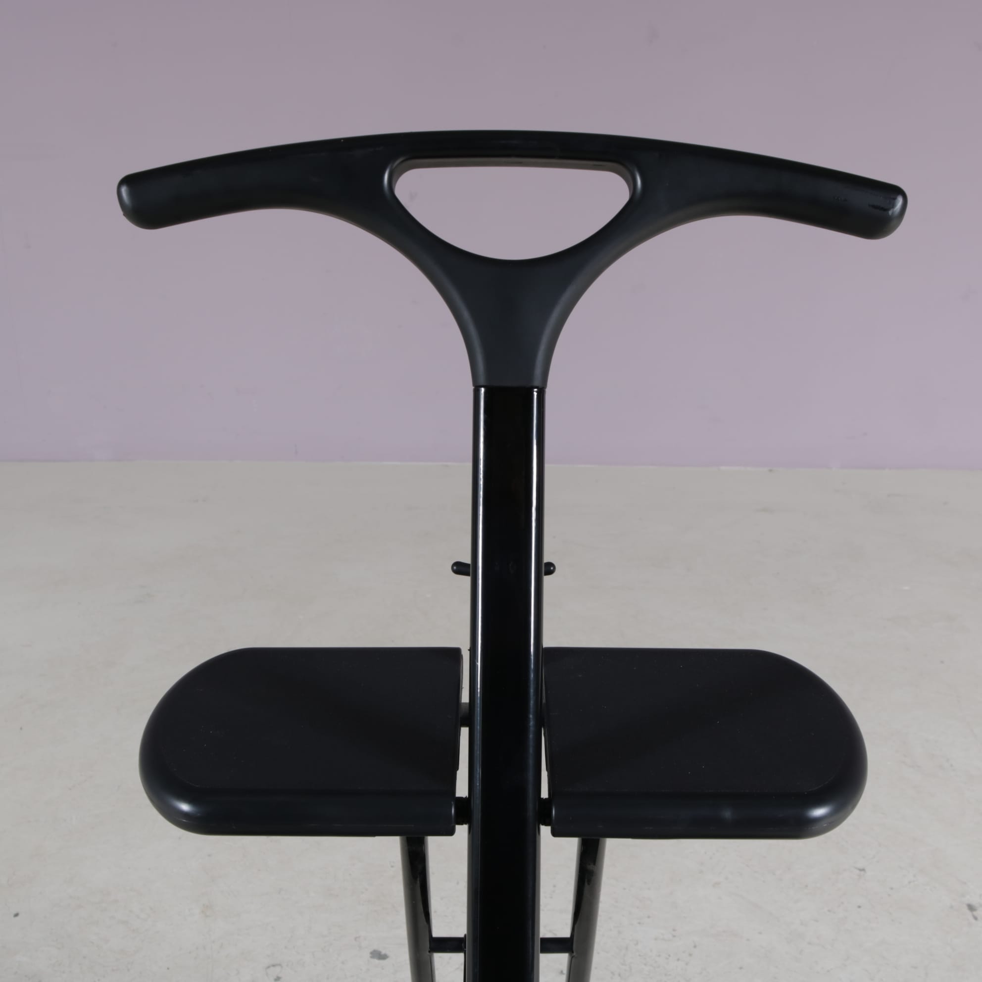 This practical and playful piece is crafted in black plastic, featuring a practical folding mechanism that allows it to be easily moved and stored. The design combines function with practicality in a most innovative way. Combined with the use of plastic as the material, this piece is a true statement to Italian mid-century design with it’s very own, unique style!