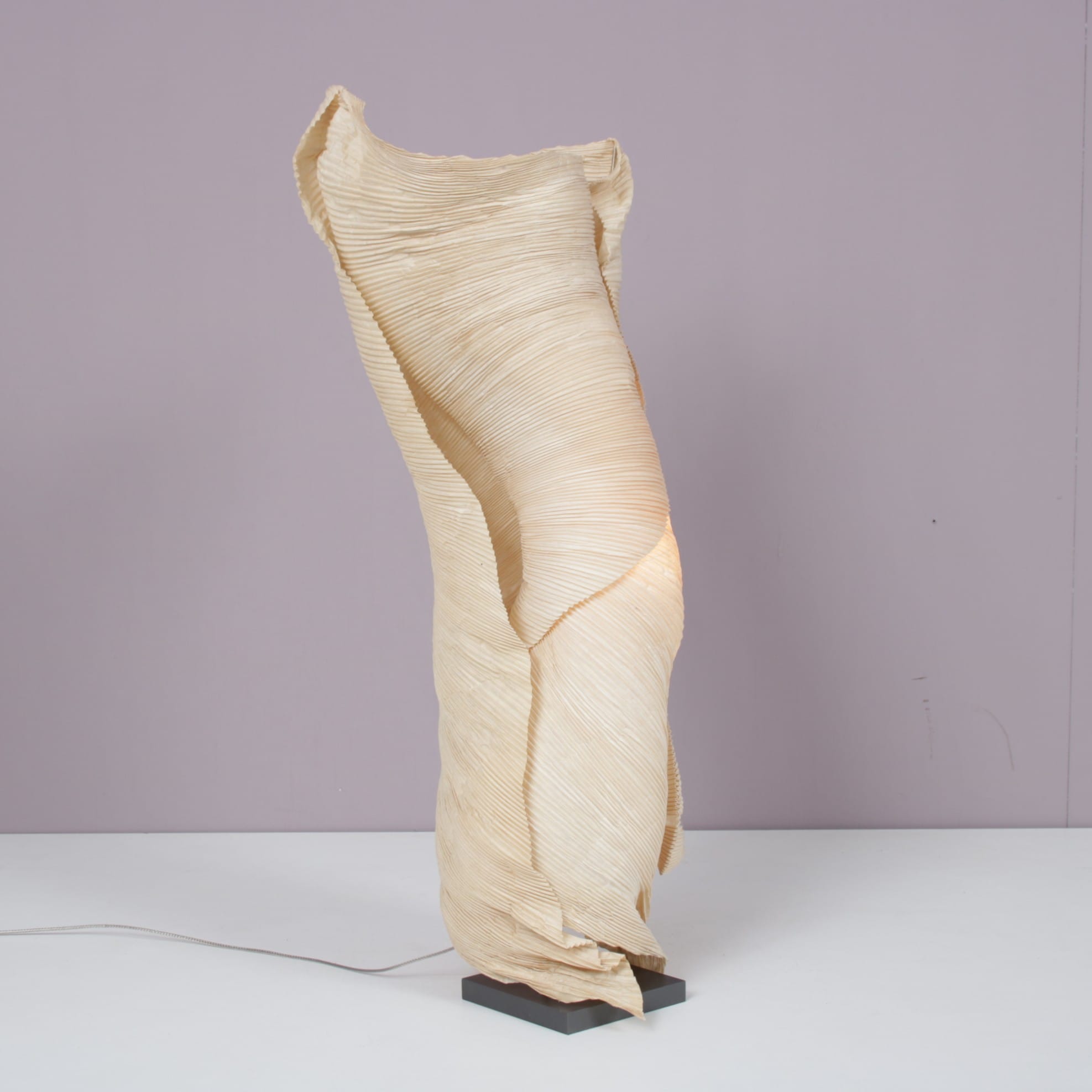 Designed for the famous MaMo Nouchies series, recognized by unique and organic shapes with a most expressive way of emitting it’s light. This unique lamp has a metal frame, holding the beautiful and delicate paper shade.The paper shade softly diffuses the light in different ways throughout it’s shape. An absolutely fantastic find of mid-century lighting!