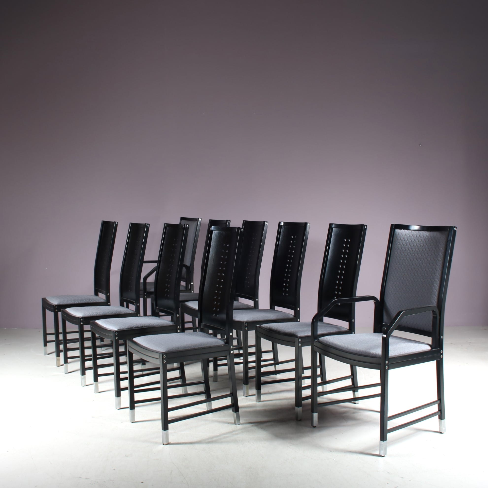 An impressive set of ten dining chairs, designed by Ernst W. Beranek and manufactured by Thonet in Austria around 1980.